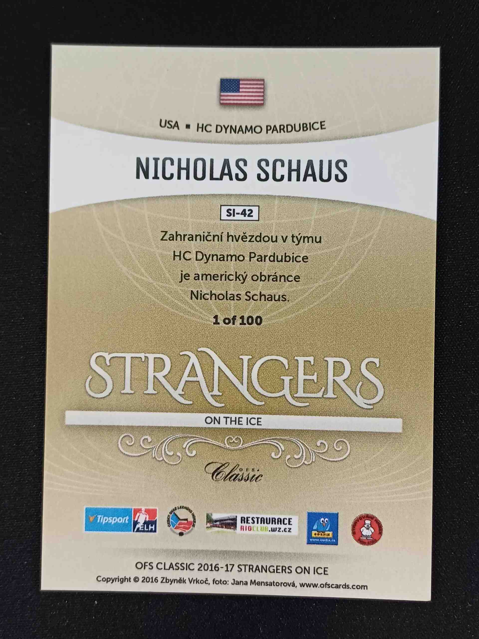 Sběratelská karta 2016/2017 OFS Classic Strangers on the Ice SI-42 Nicholas Schaus Inzert /100
