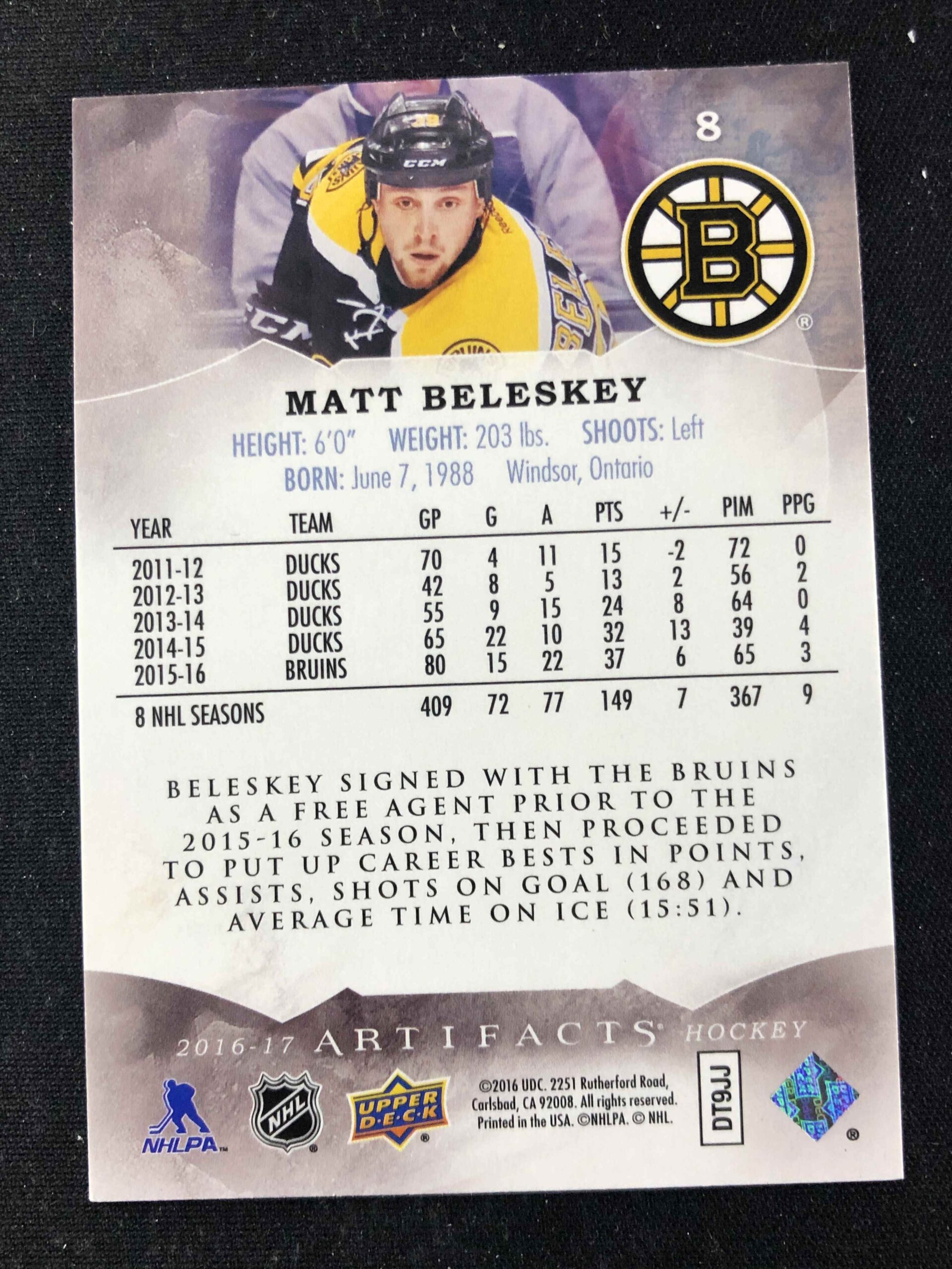 Sběratelská karta 2016/2017 Upper Deck Artifacts Base 8 Matt Beleskey