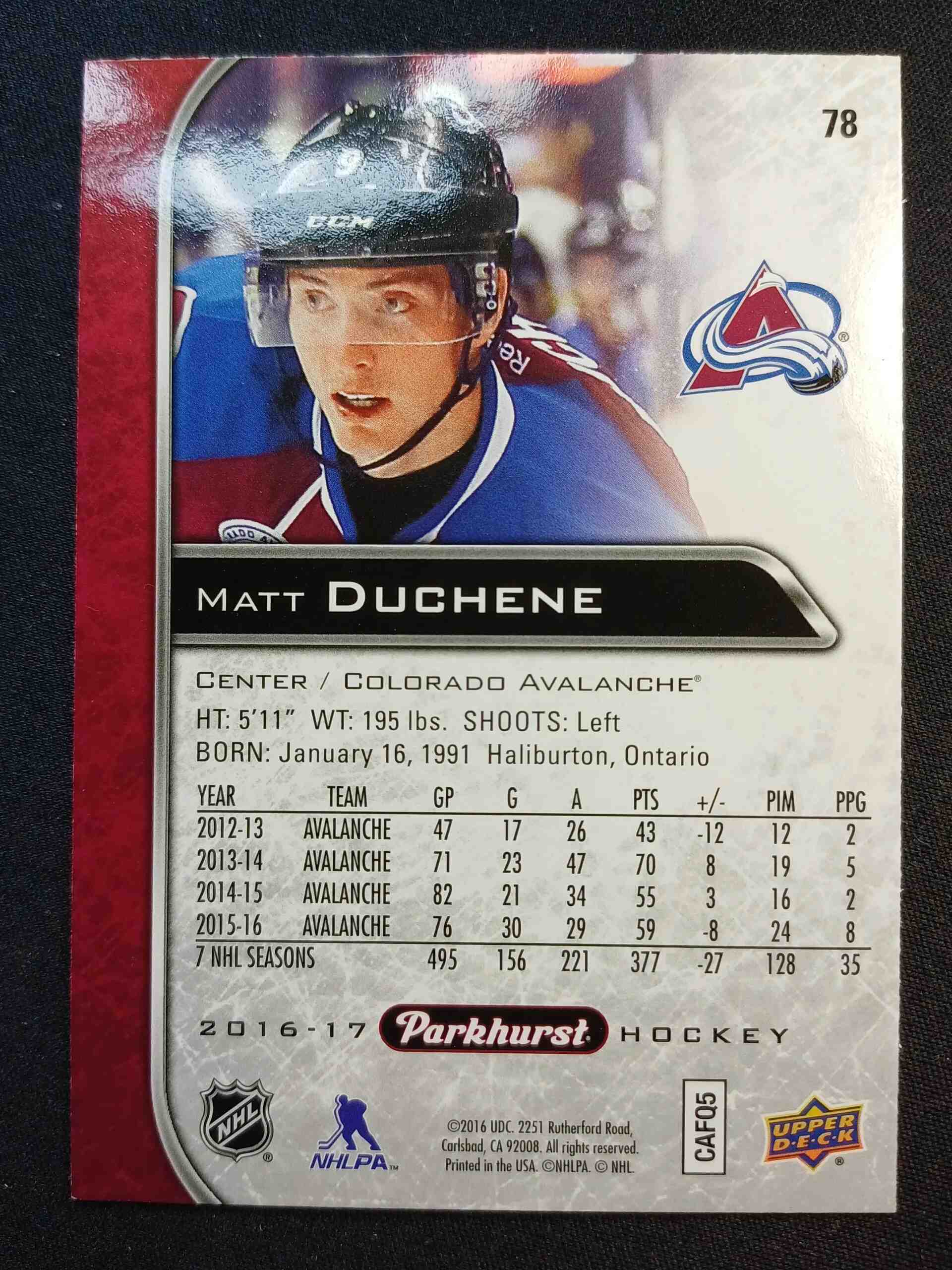 Sběratelská karta 2016/2017 Upper Deck Parkhurst Red 78 Matt Duchene Paralel