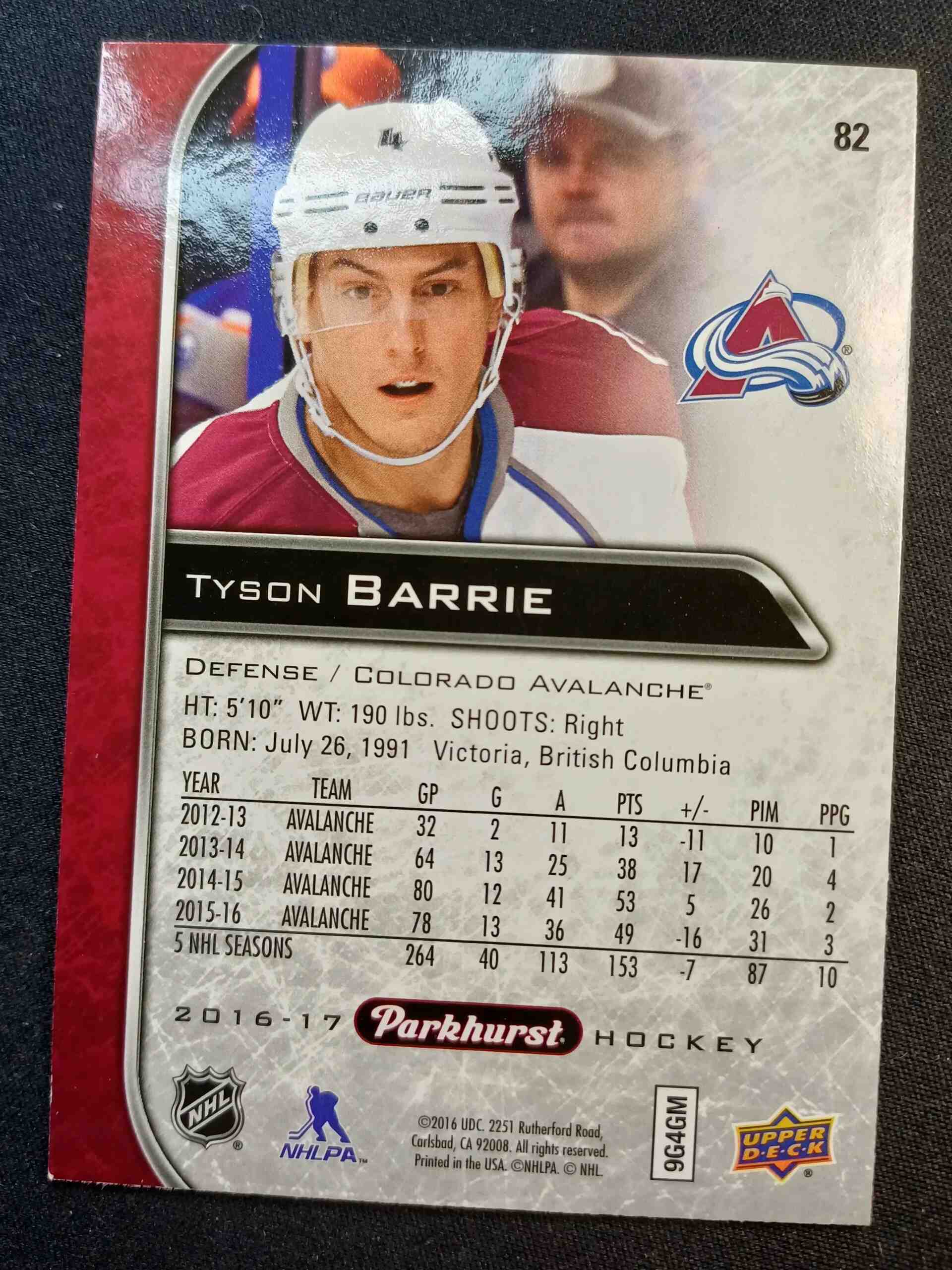 2016/2017 Upper Deck Parkhurst Red 82 Tyson Barrie Paralel