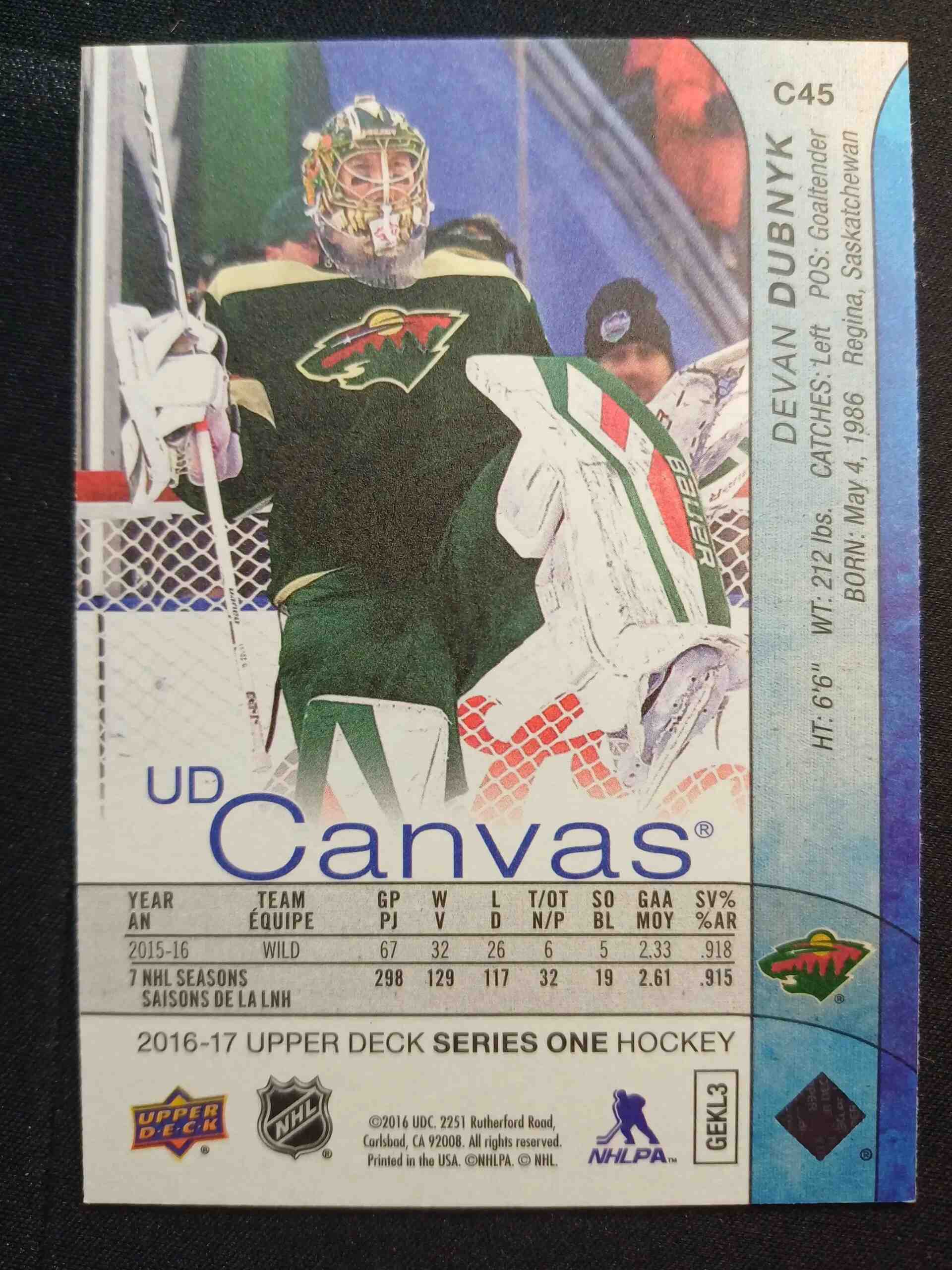 Sběratelská karta 2016/2017 Upper Deck Series 1 Canvas C45 Devan Dubnyk Inzert