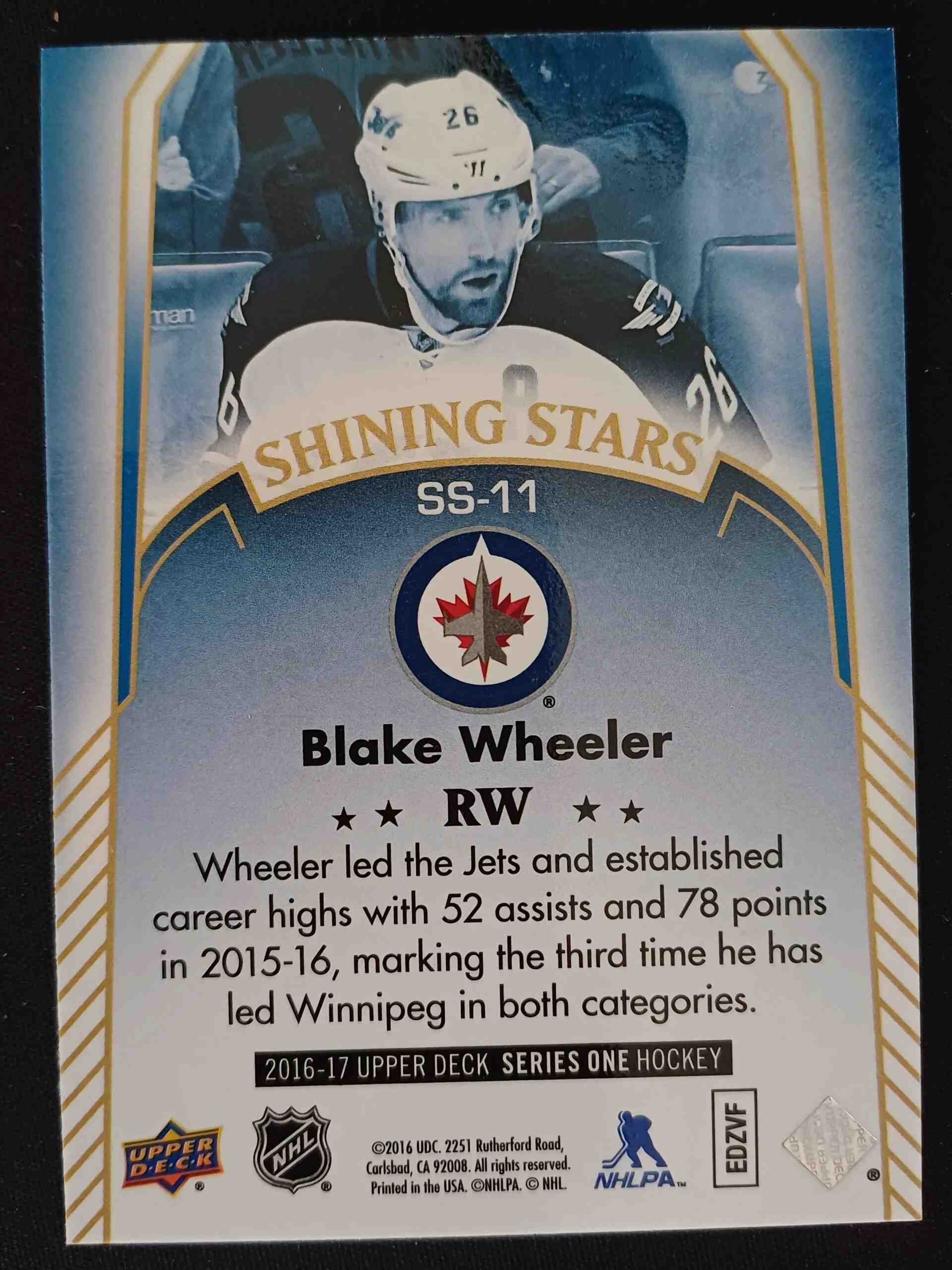Sběratelská karta 2016/2017 Upper Deck Series 1 Shining Stars SS-11 Blake Wheeler Inzert