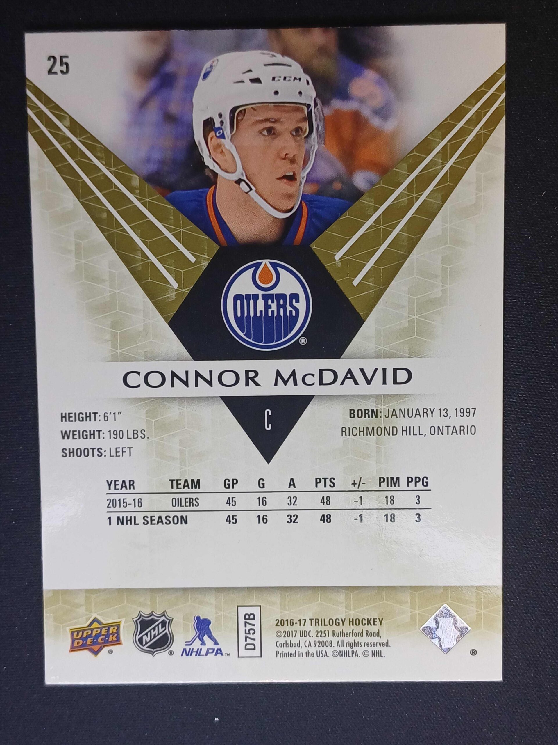 Sběratelská karta 2016/2017 Upper Deck Trilogy Base 25 Connor McDavid