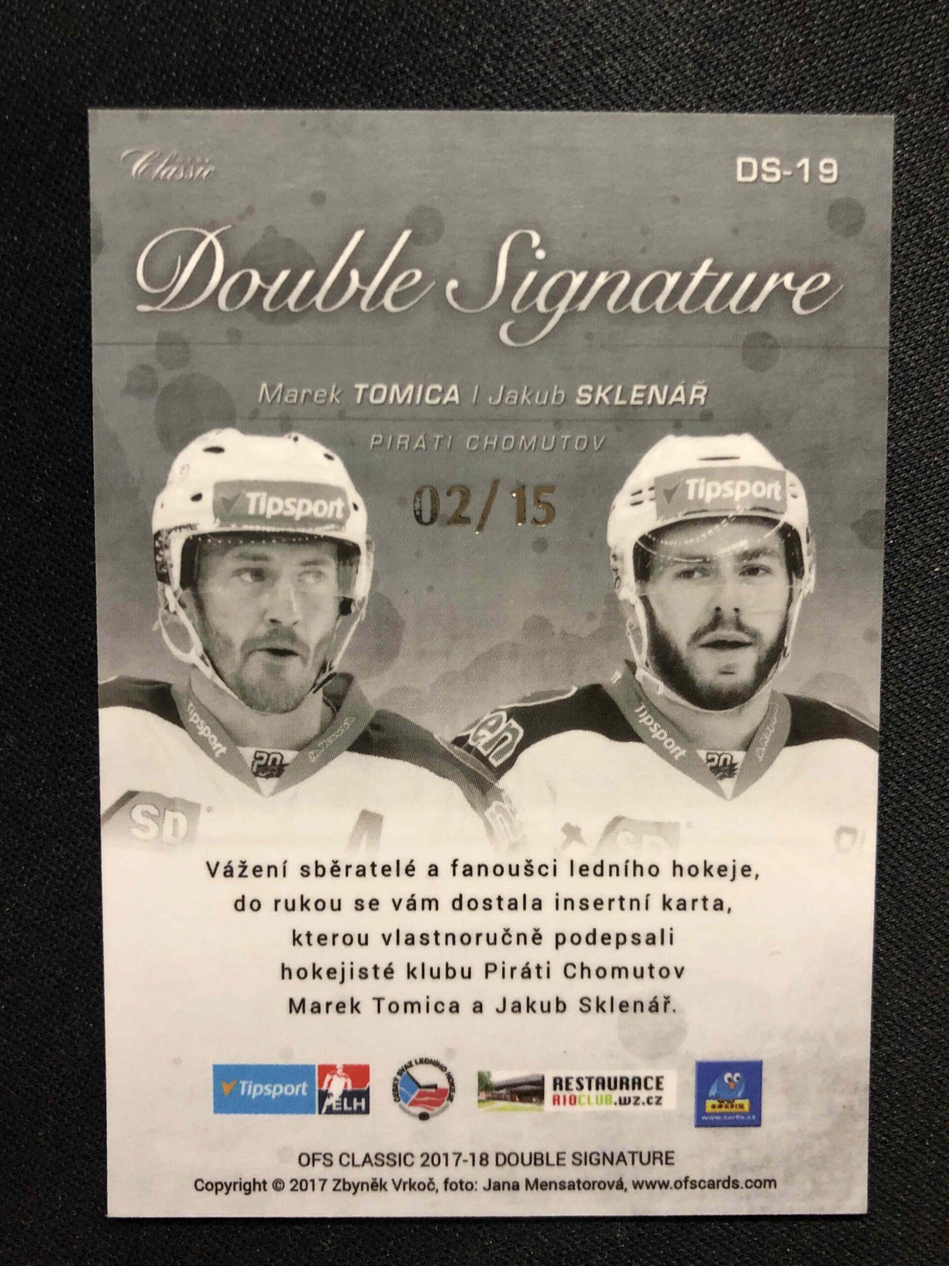 Sběratelská karta 2017/2018 OFS Classic Double Signature Platinum DS-19 Marek Tomica, Jakub Sklenář AUTO 02/15