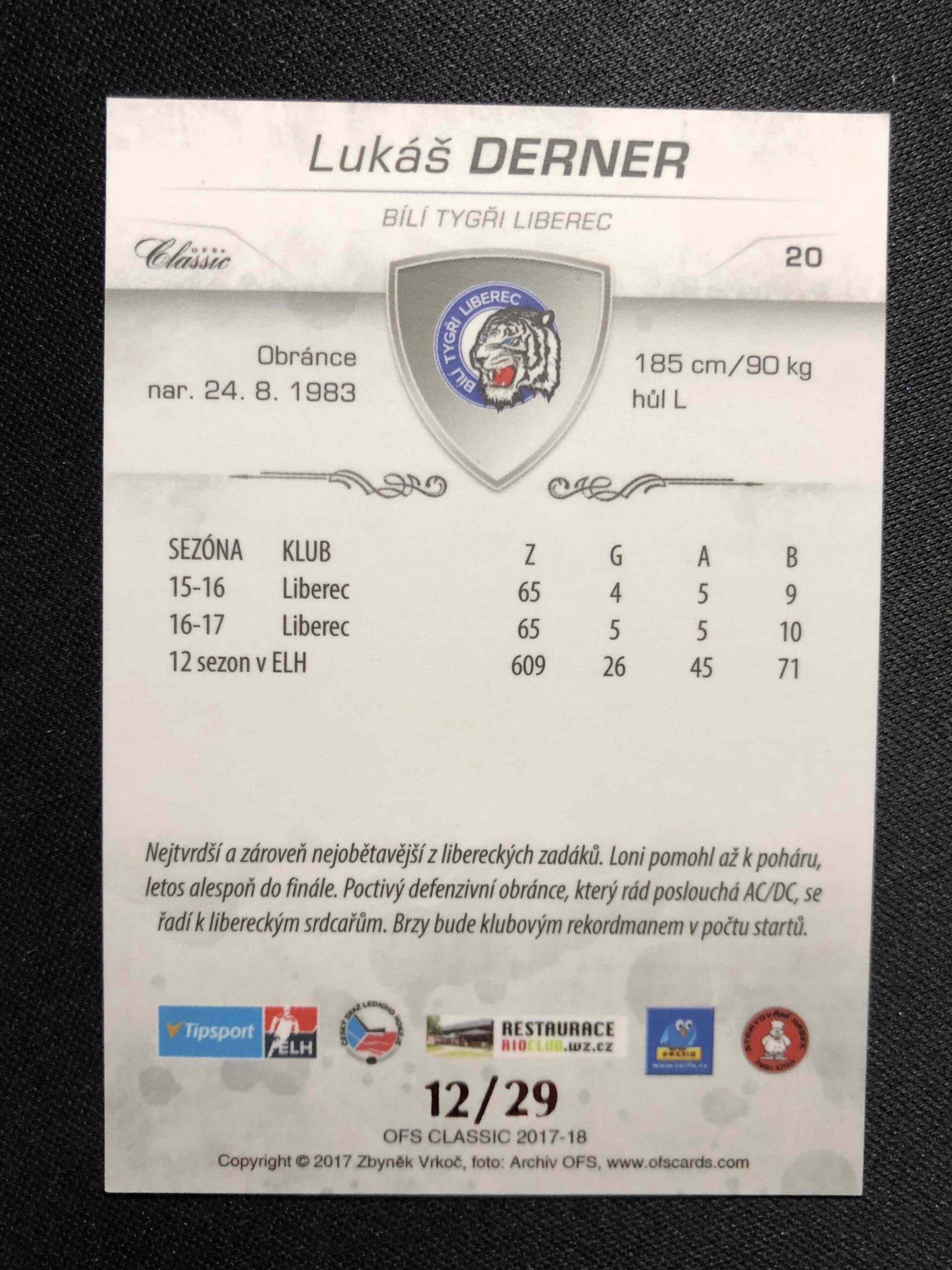 Sběratelská karta 2017/2018 OFS Classic Red 20 Lukáš Derner Paralel 12/29
