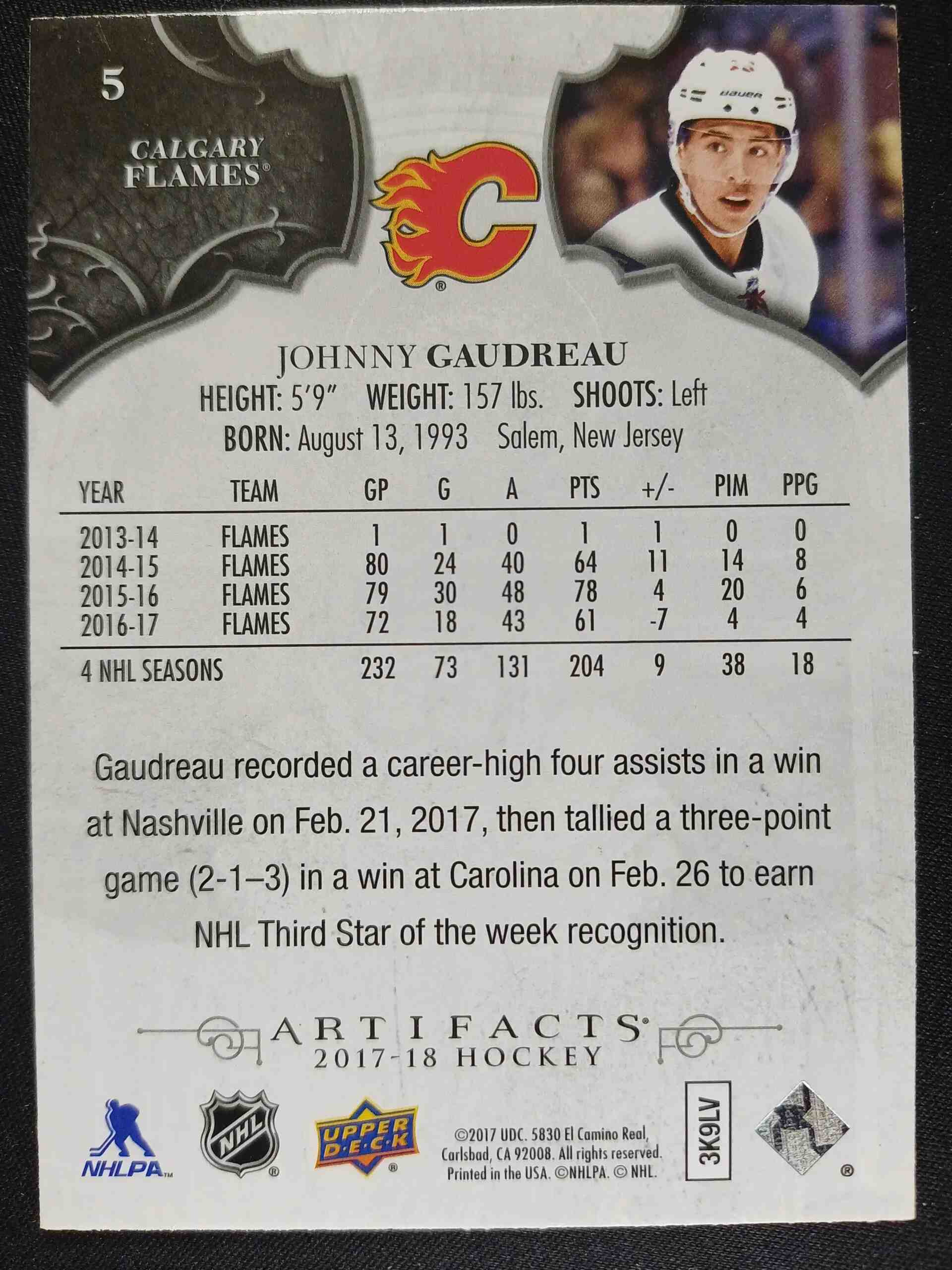 Sběratelská karta 2017/2018 Upper Deck Artifacts Base 5 Johnny Gaudreau