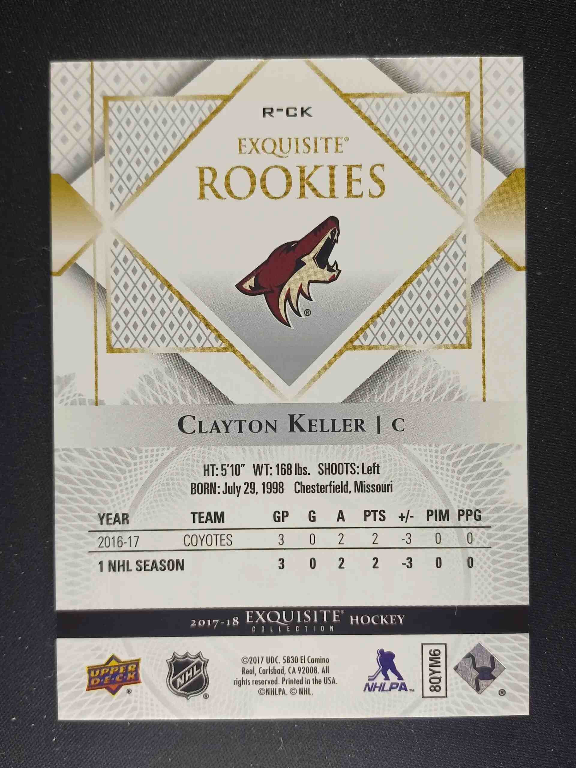 Sběratelská karta 2017/2018 Upper Deck Black Diamond Exquisite Collection Exquisite Rookies R-CK Clayton Keller Inzert 137/199