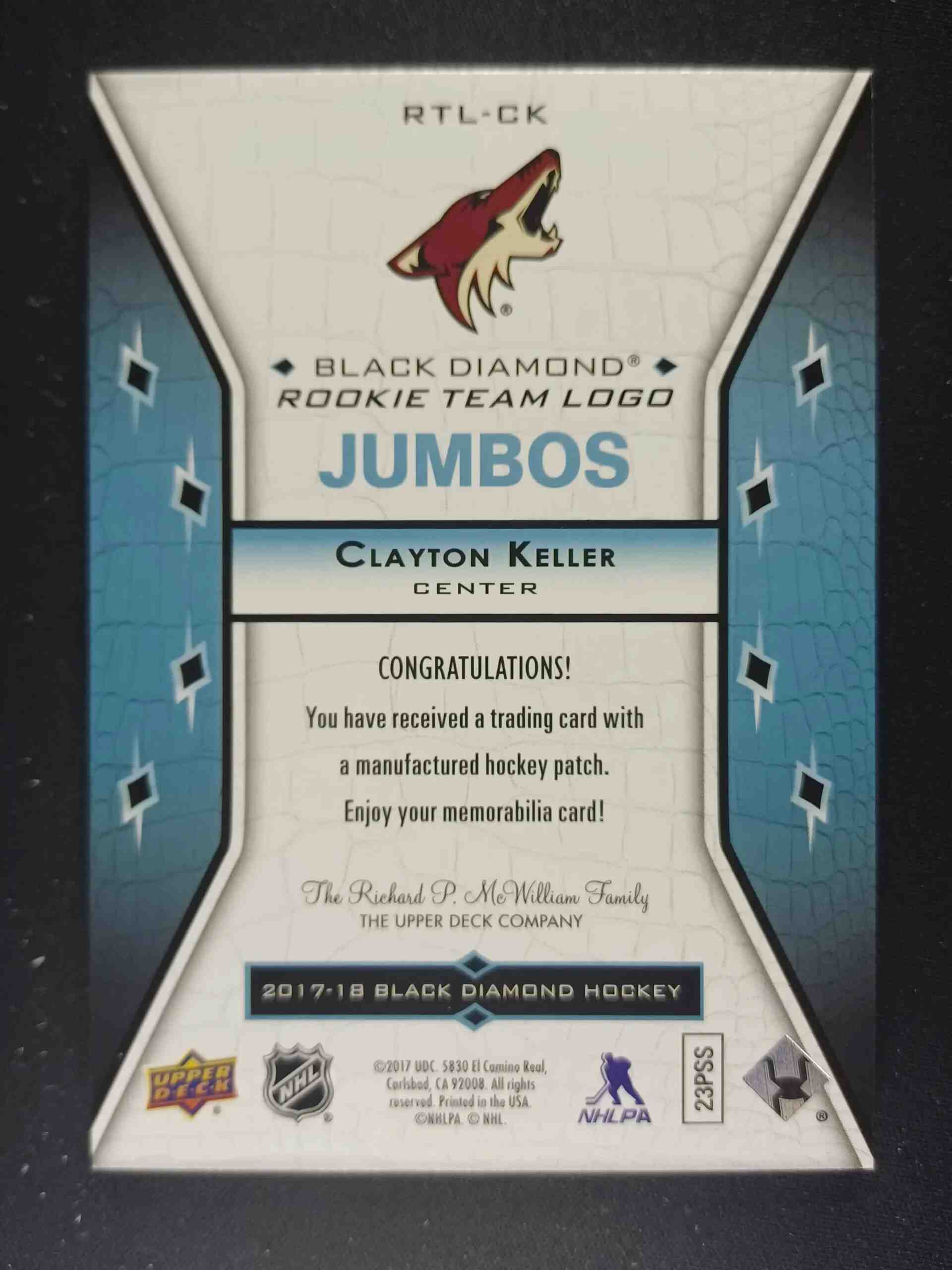 2017/2018 Upper Deck Black Diamond Rookie Team Logo Jumbos RTL-CK Clayton Keller Patch