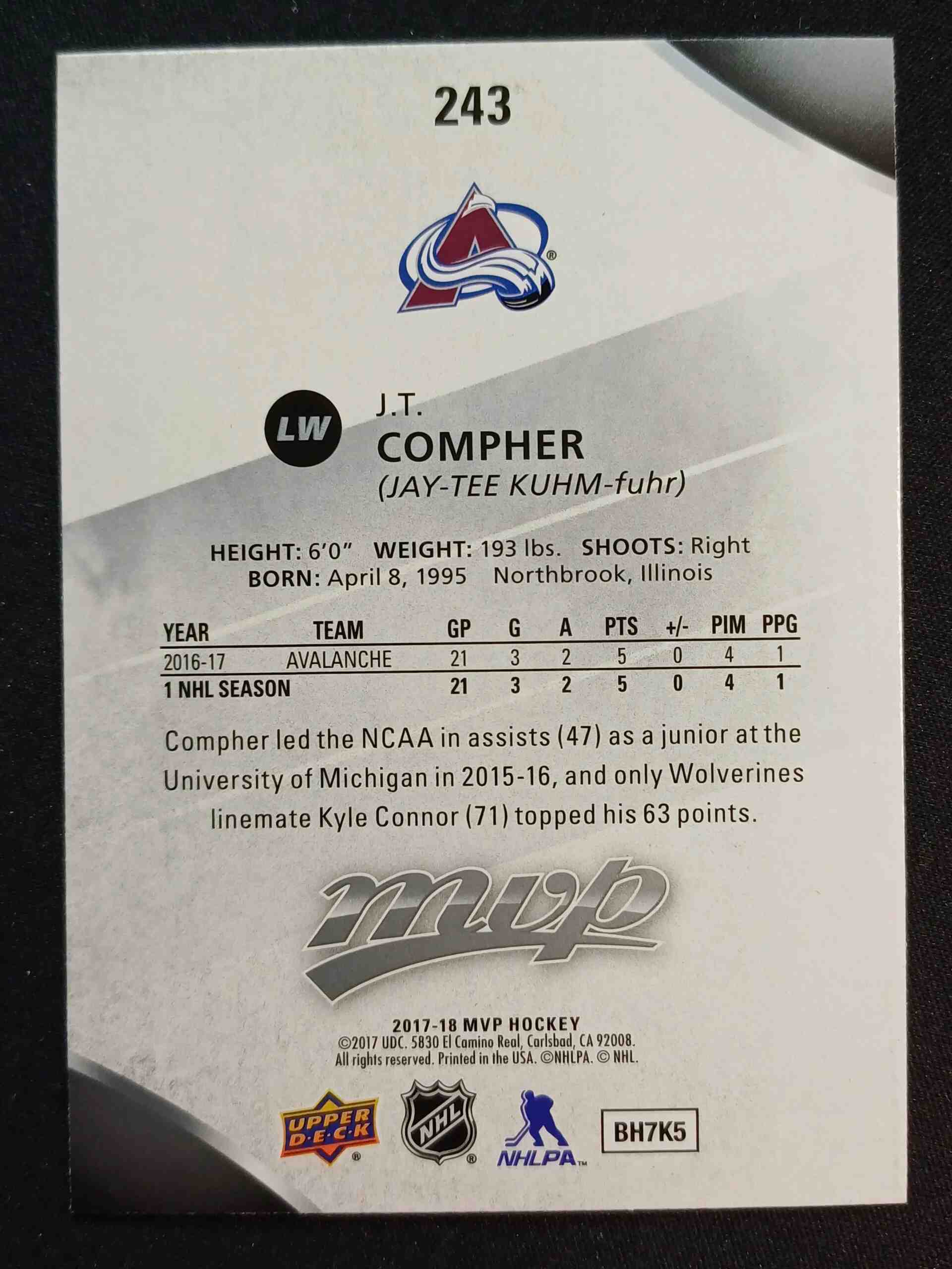 Sběratelská karta 2017/2018 Upper Deck MVP Silver Script 243 J.T. Compher Paralel
