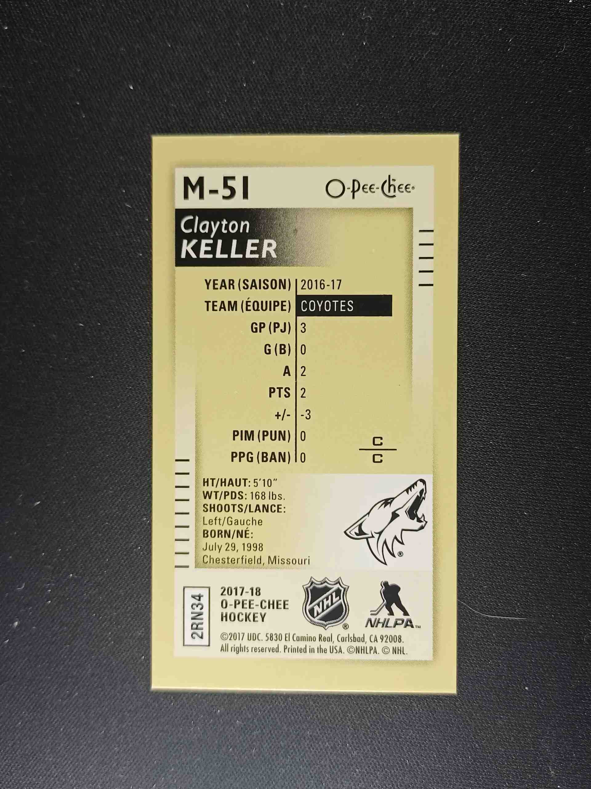 2017/2018 Upper Deck O-Pee-Chee Mini Black Foil M-51 Clayton Keller Paralel
