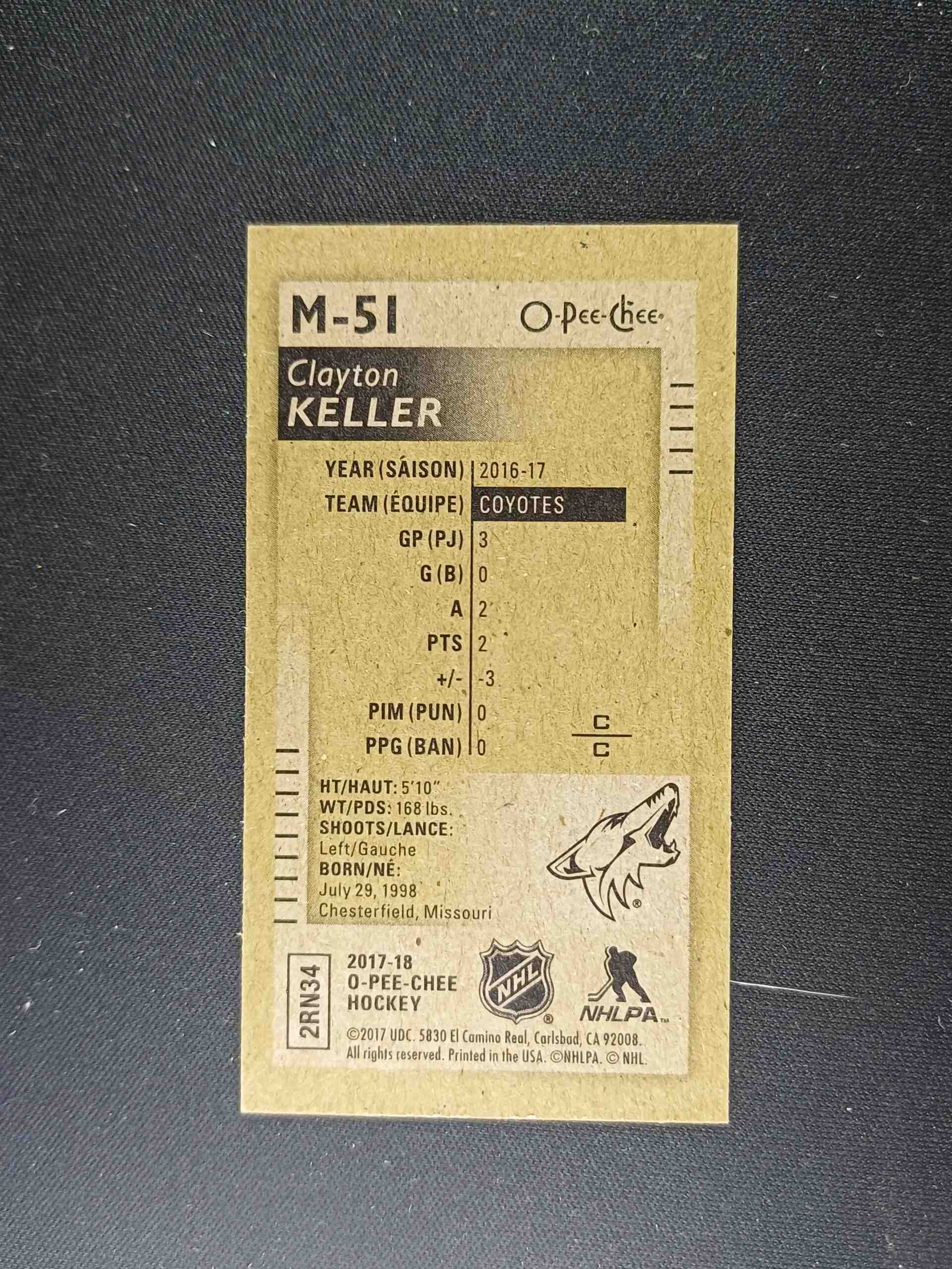 Sběratelská karta 2017/2018 Upper Deck O-Pee-Chee Mini M-51 Clayton Keller Paralel