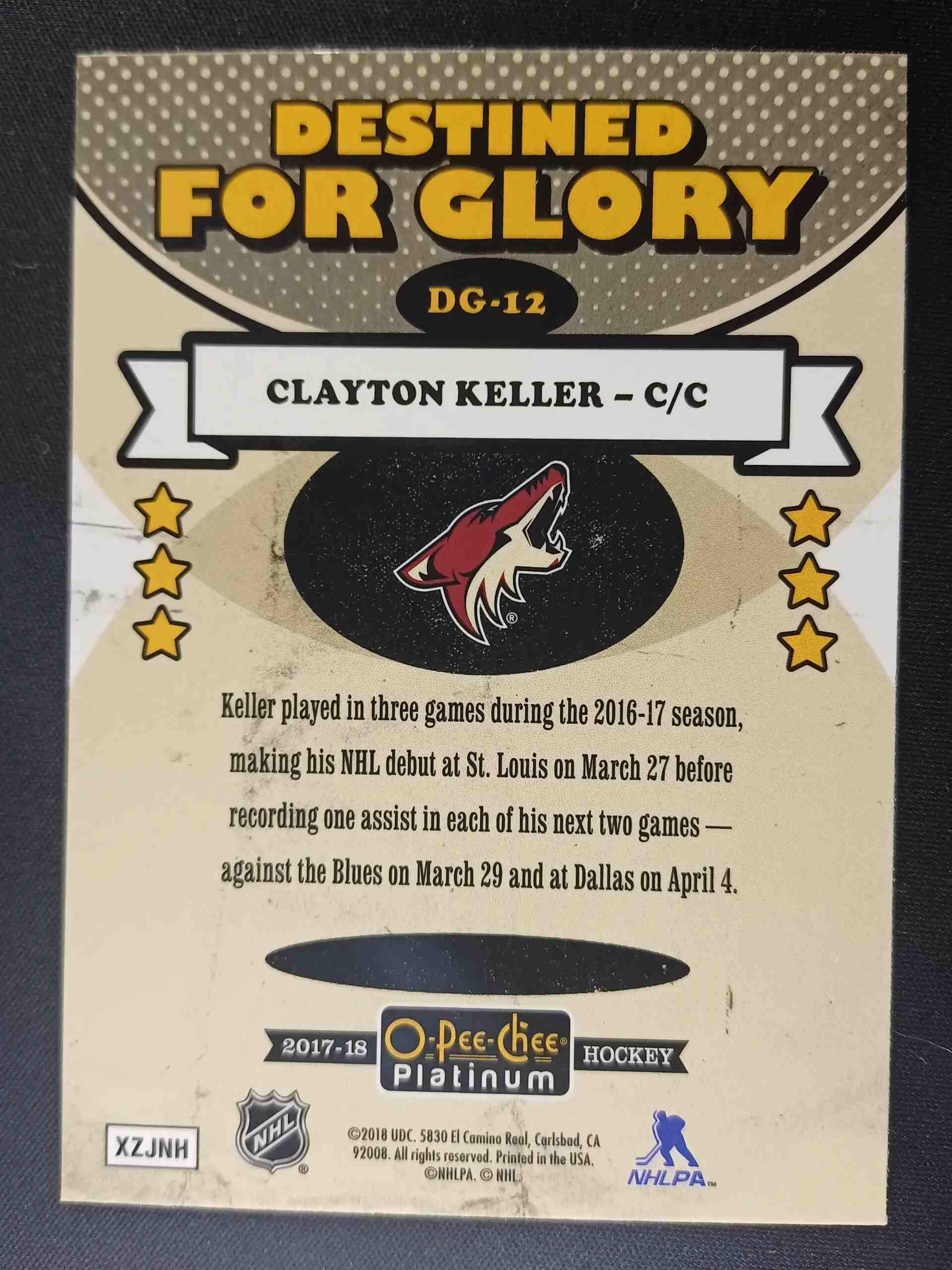 Sběratelská karta 2017/2018 Upper Deck OPC Platinum Destined for Glory DG-12 Clayton Keller Inzert