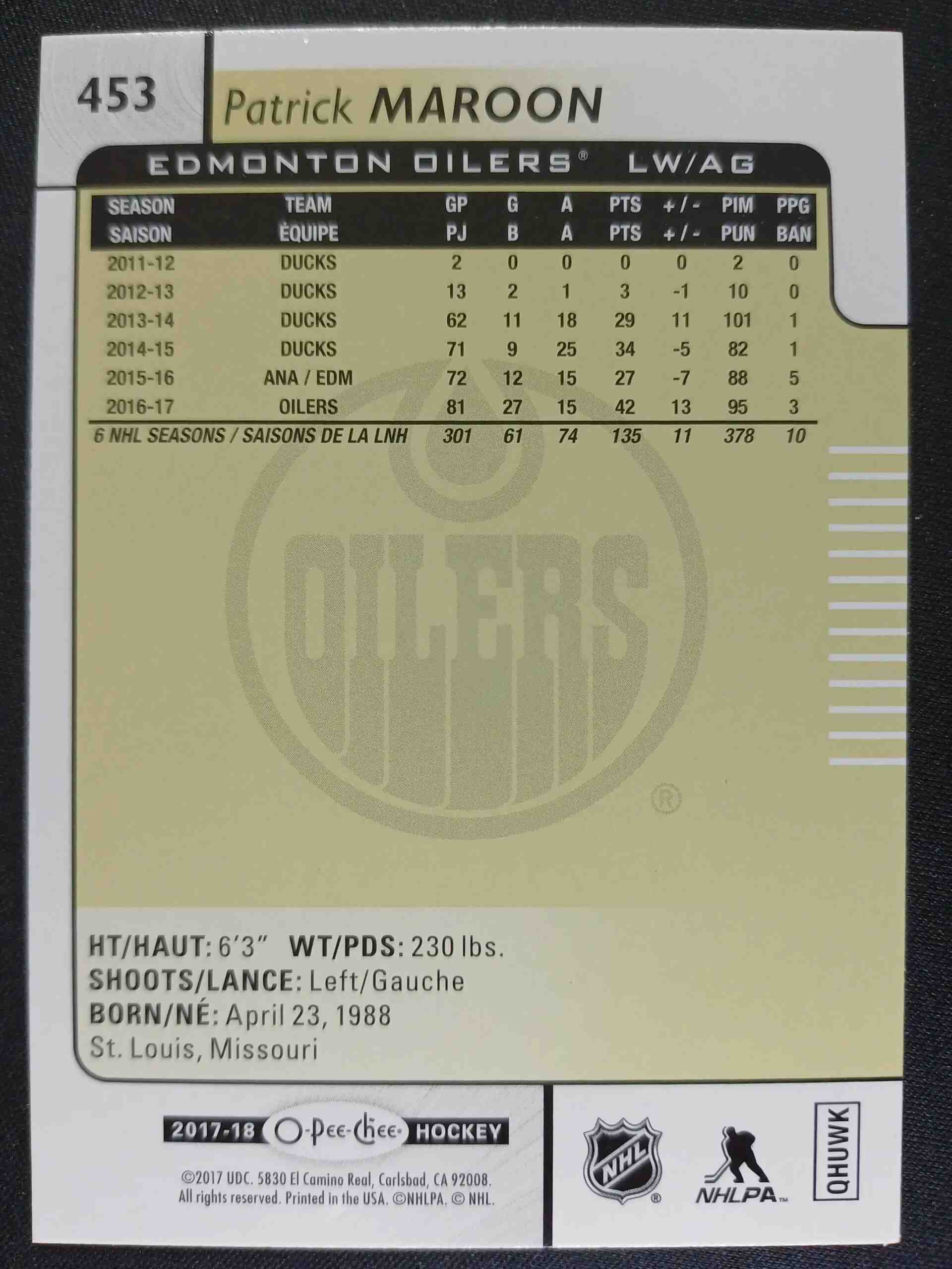 Sběratelská karta 2017/2018 Upper Deck OPC Platinum Rainbow 453 Patrick Maroon Paralel