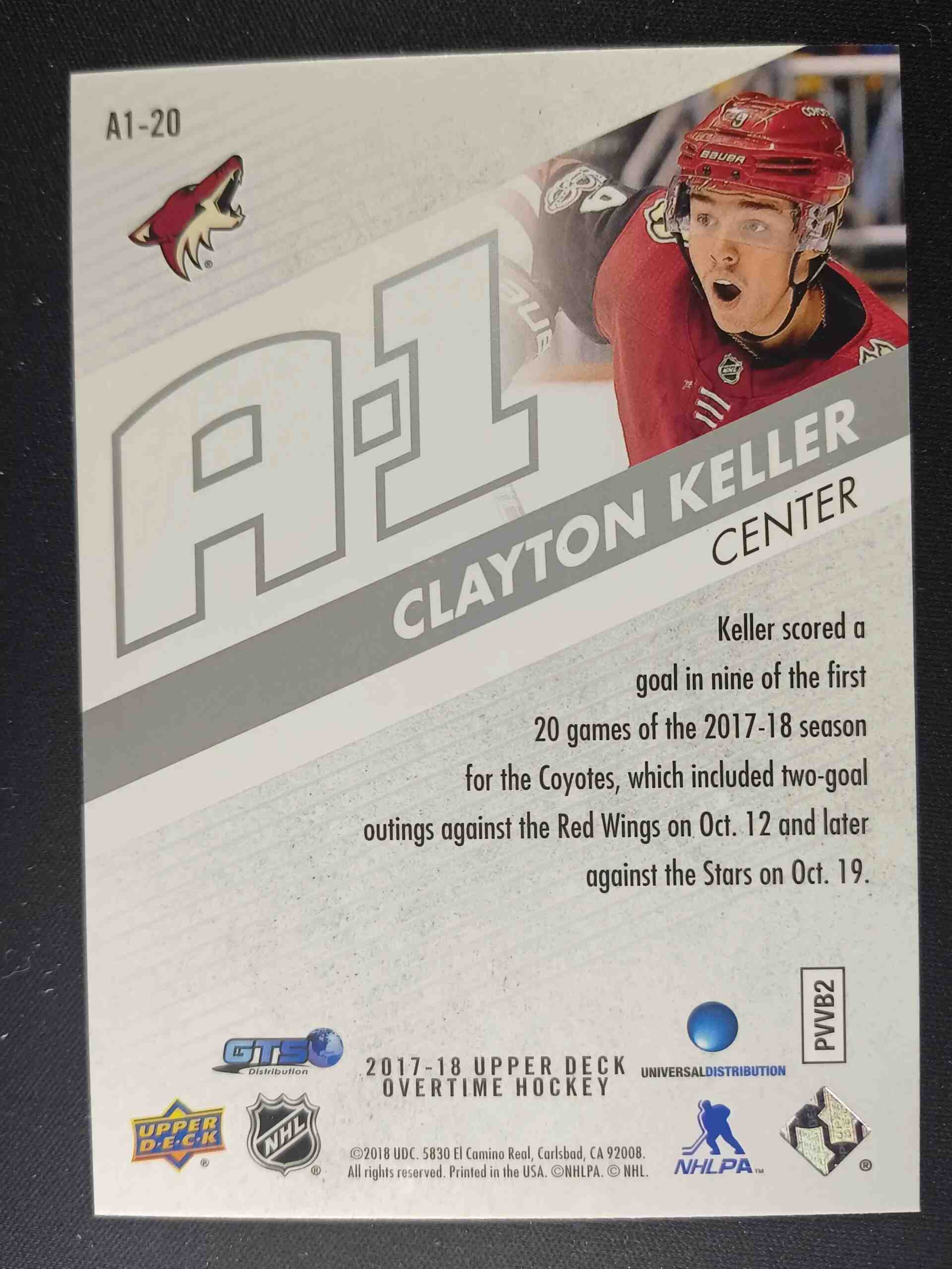 Sběratelská karta 2017/2018 Upper Deck Overtime A-1 A1-20 Clayton Keller Inzert