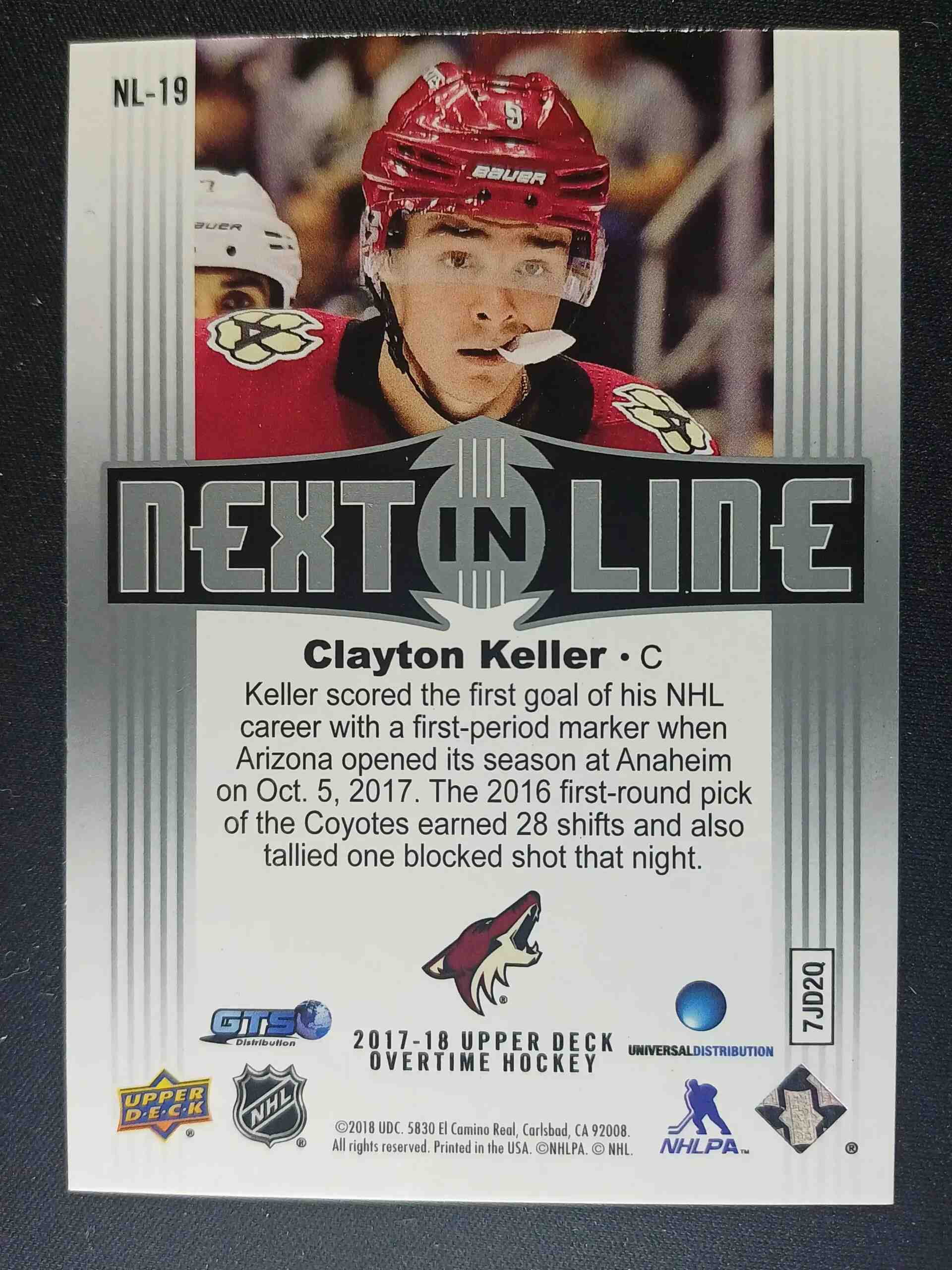 2017/2018 Upper Deck Overtime Next in Line NL-19 Clayton Keller Inzert