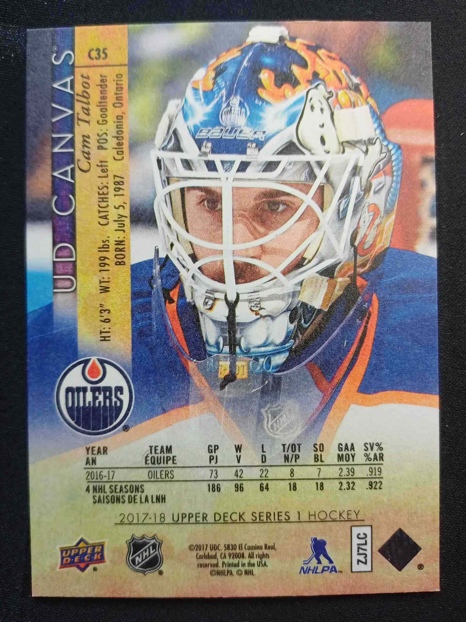 Sběratelská karta 2017/2018 Upper Deck Series 1 Canvas C35 Cam Talbot Inzert