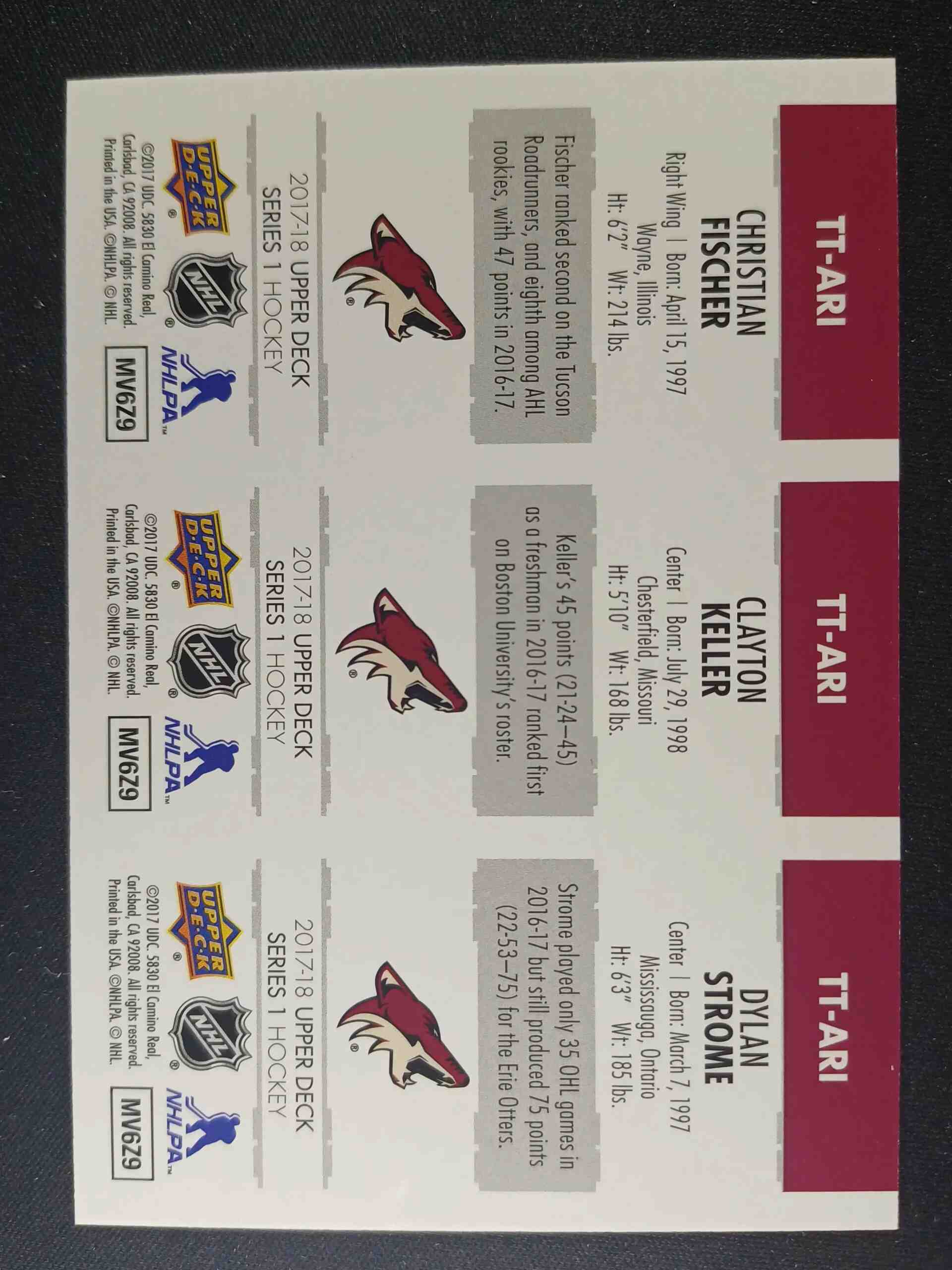Sběratelská karta 2017/2018 Upper Deck Series 1 Team Triples TT-ARI Clayton Keller Inzert