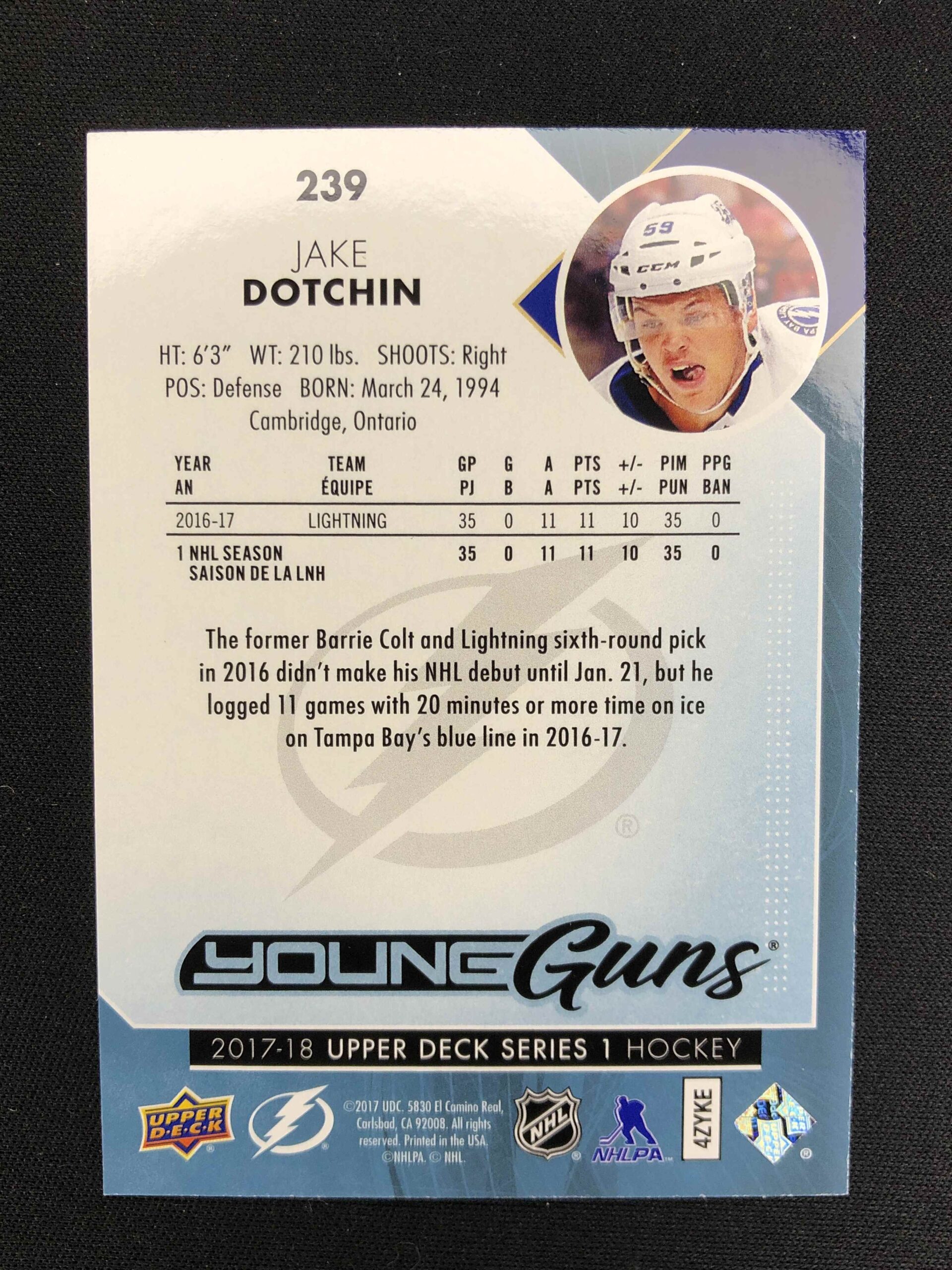 2017/2018 Upper Deck Series 1 Young Guns 239 Jake Dotchin Inzert