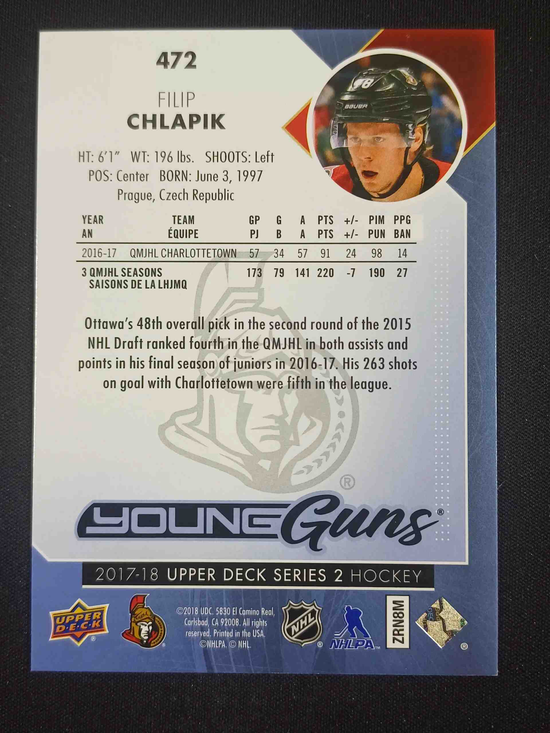 Sběratelská karta 2017/2018 Upper Deck Series 2 Young Guns Silver Foil 472 Filip Chlapik Inzert