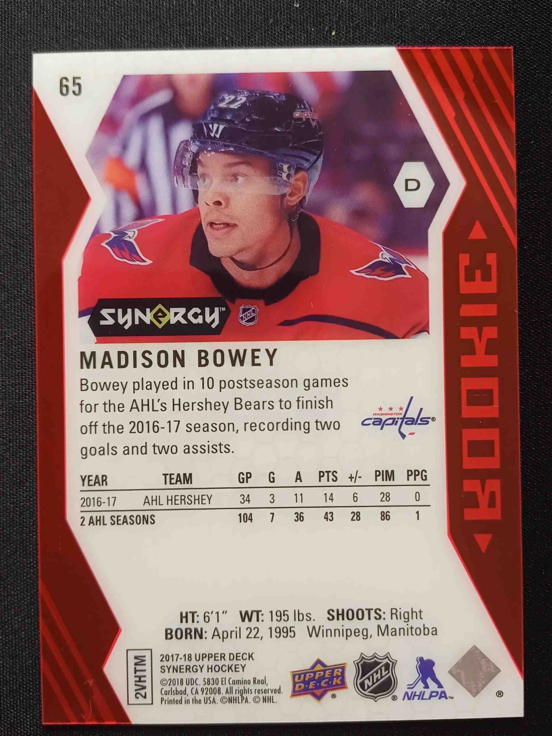 Sběratelská karta 2017/2018 Upper Deck Synergy Red 65 Madison Bowey