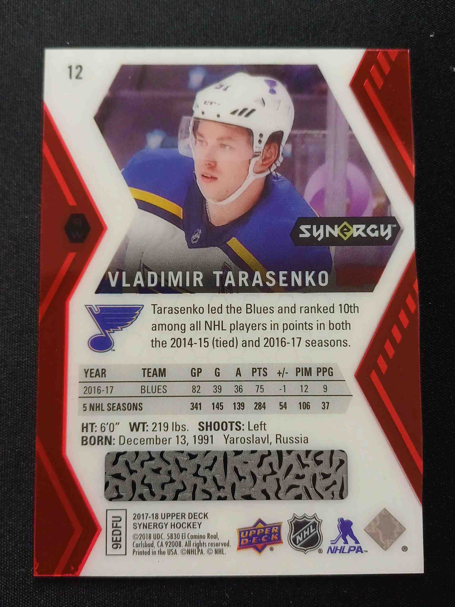 2017/2018 Upper Deck Synergy Red Bounty 12 Vladimir Tarasenko Paralel