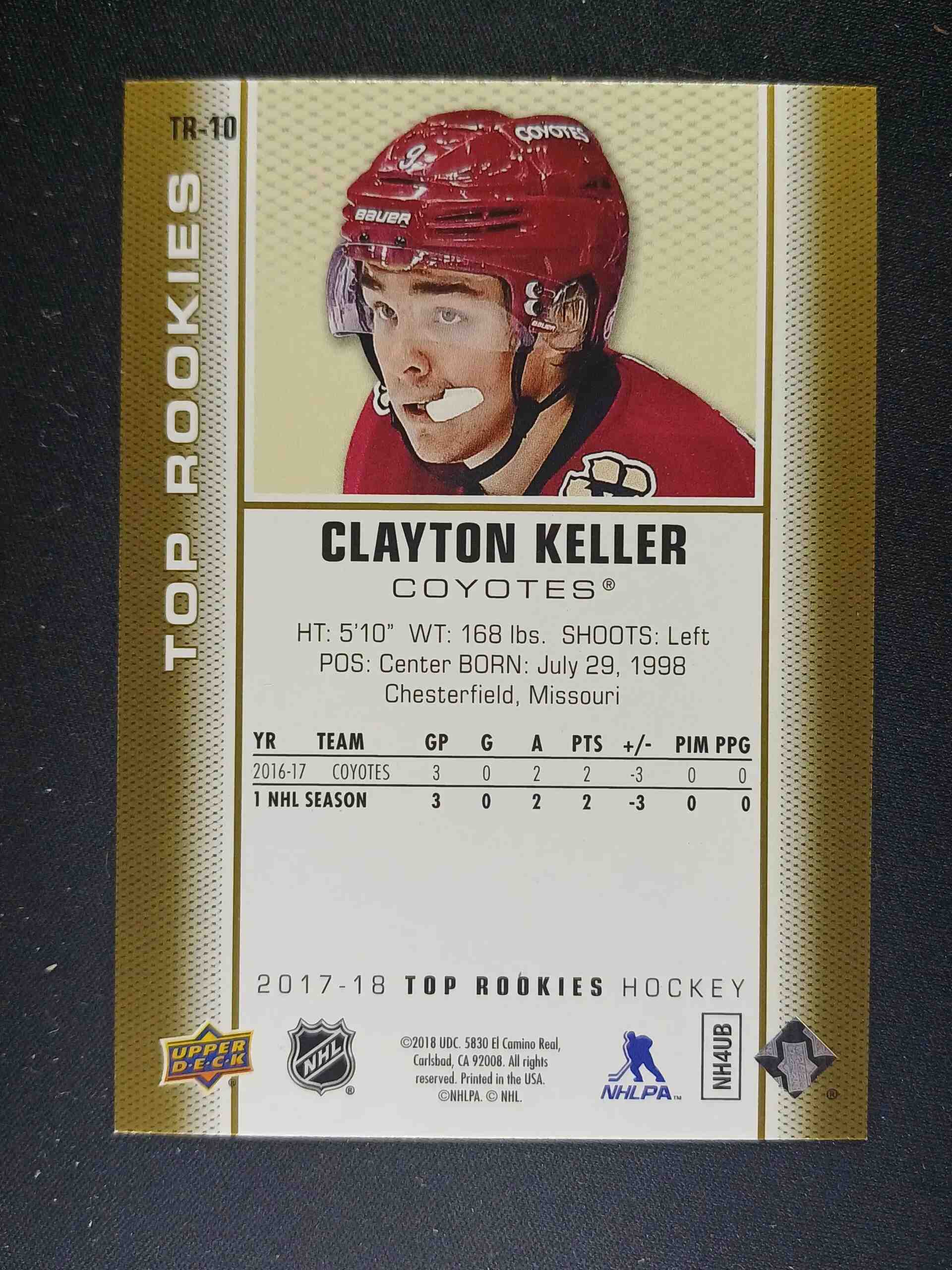 Sběratelská karta 2017/2018 Upper Deck Top Rookies Gold TR-10 Clayton Keller Paralel