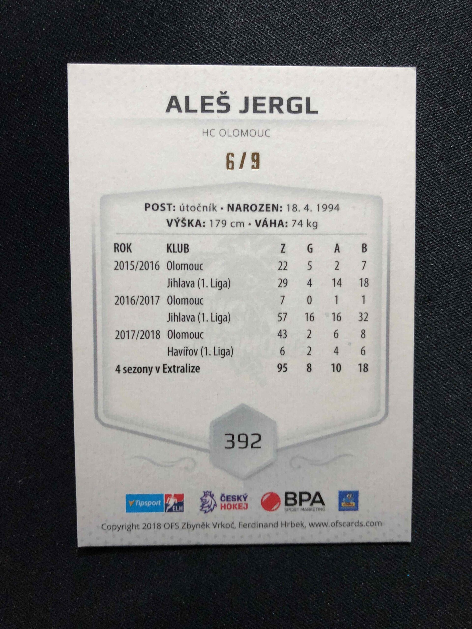 Sběratelská karta 2018/2019 OFS Classic Rainbow 392 Aleš Jergl Paralel 6/9