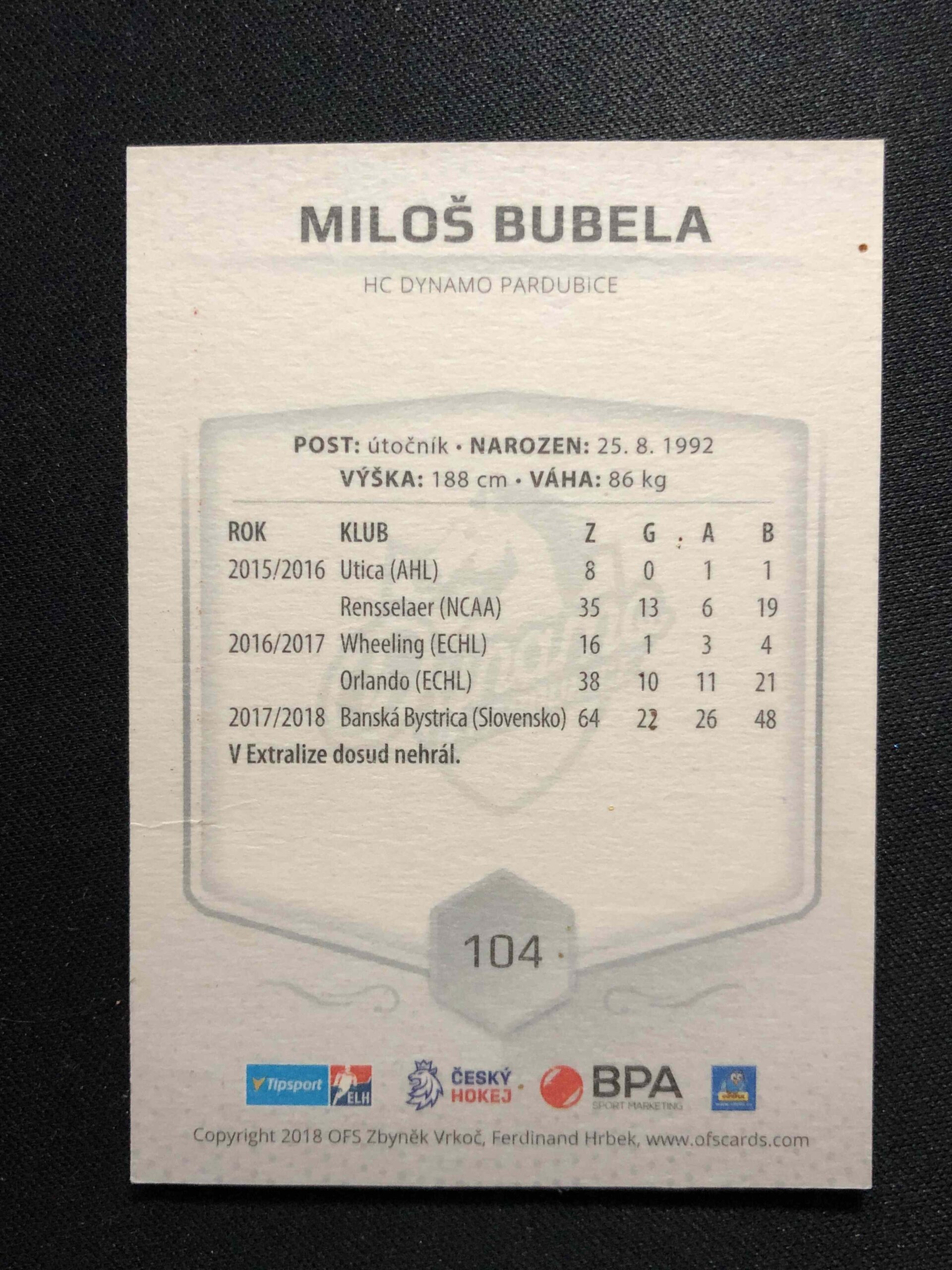 Sběratelská karta 2018/2019 OFS Classic Silver 104 Miloš Bubela Paralel