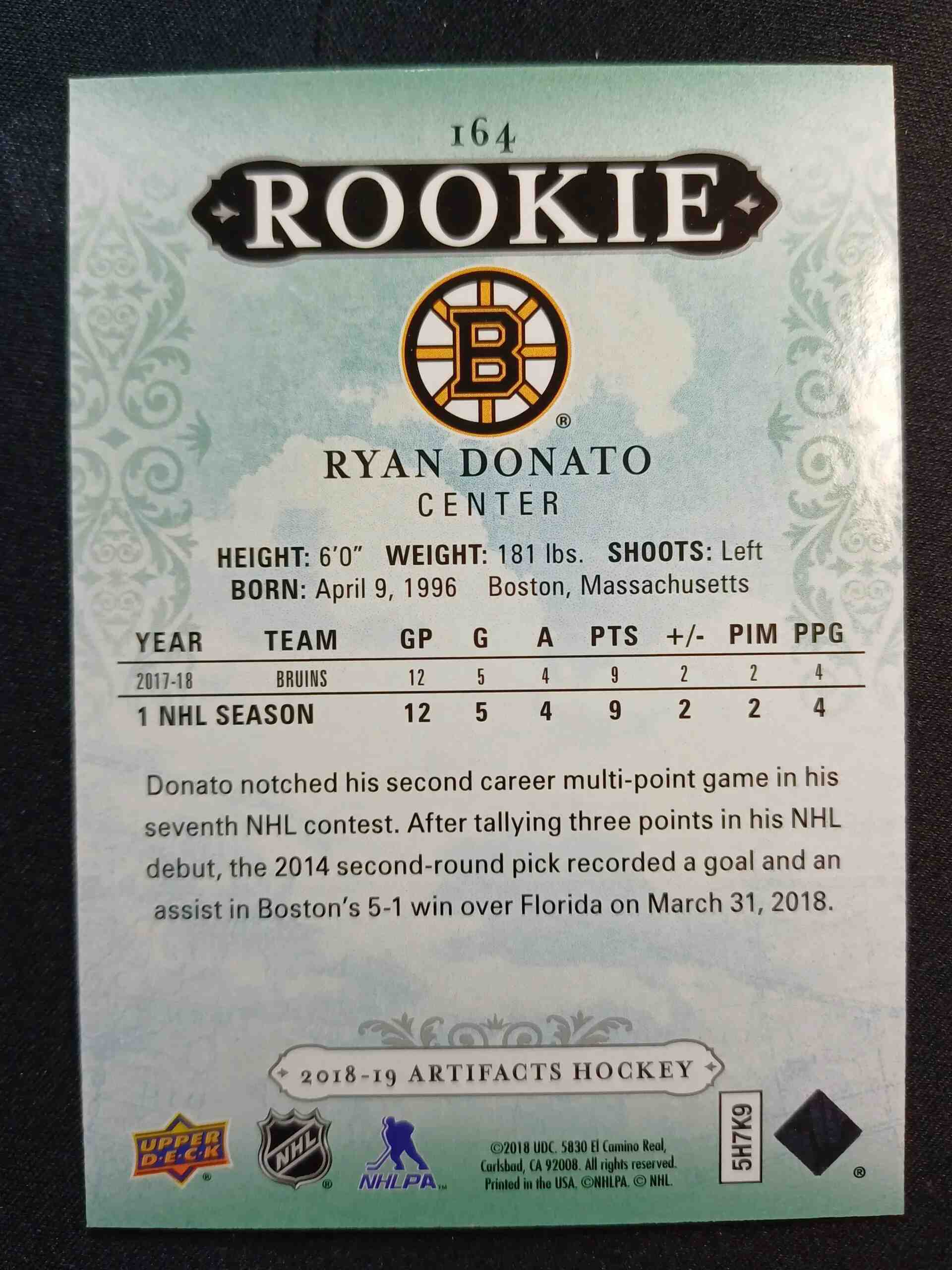 Sběratelská karta 2018/2019 Upper Deck Artifacts Base 164 Ryan Donato 206/999 /n/ Stav karty je NM-MT /n/ Pro bližší detail si prohlédněte přiložené fotografie