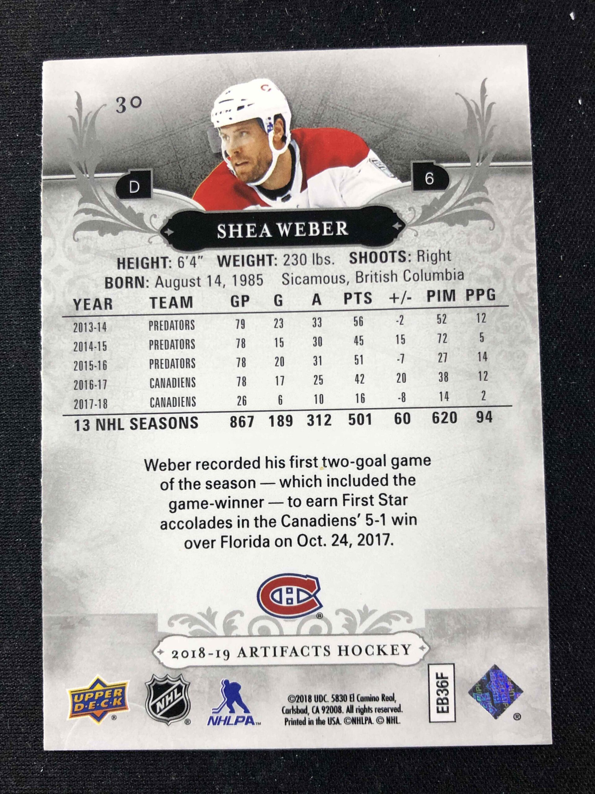 Sběratelská karta 2018/2019 Upper Deck Artifacts Base 30 Shea Weber