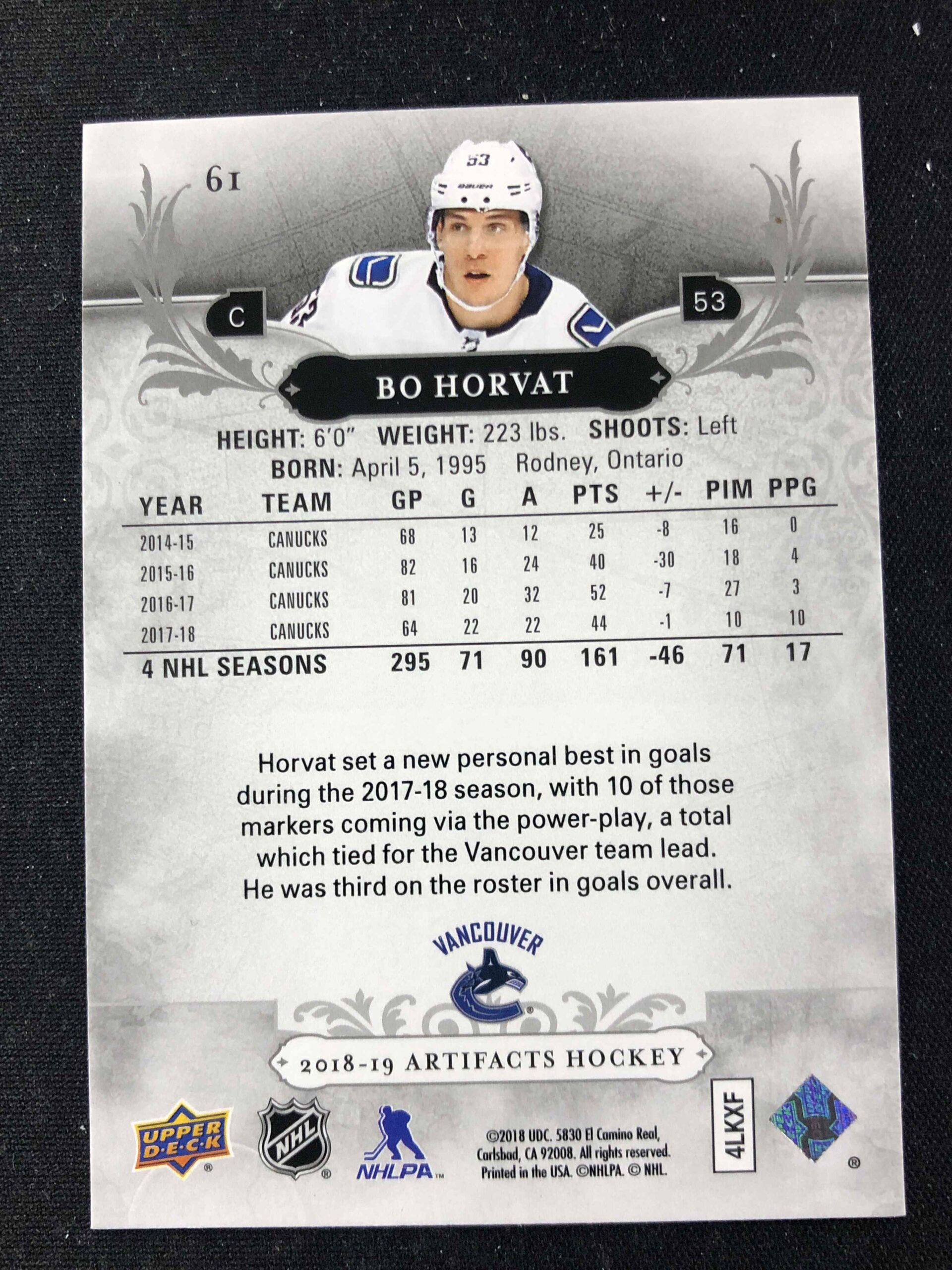 Sběratelská karta 2018/2019 Upper Deck Artifacts Base 61 Bo Horvat