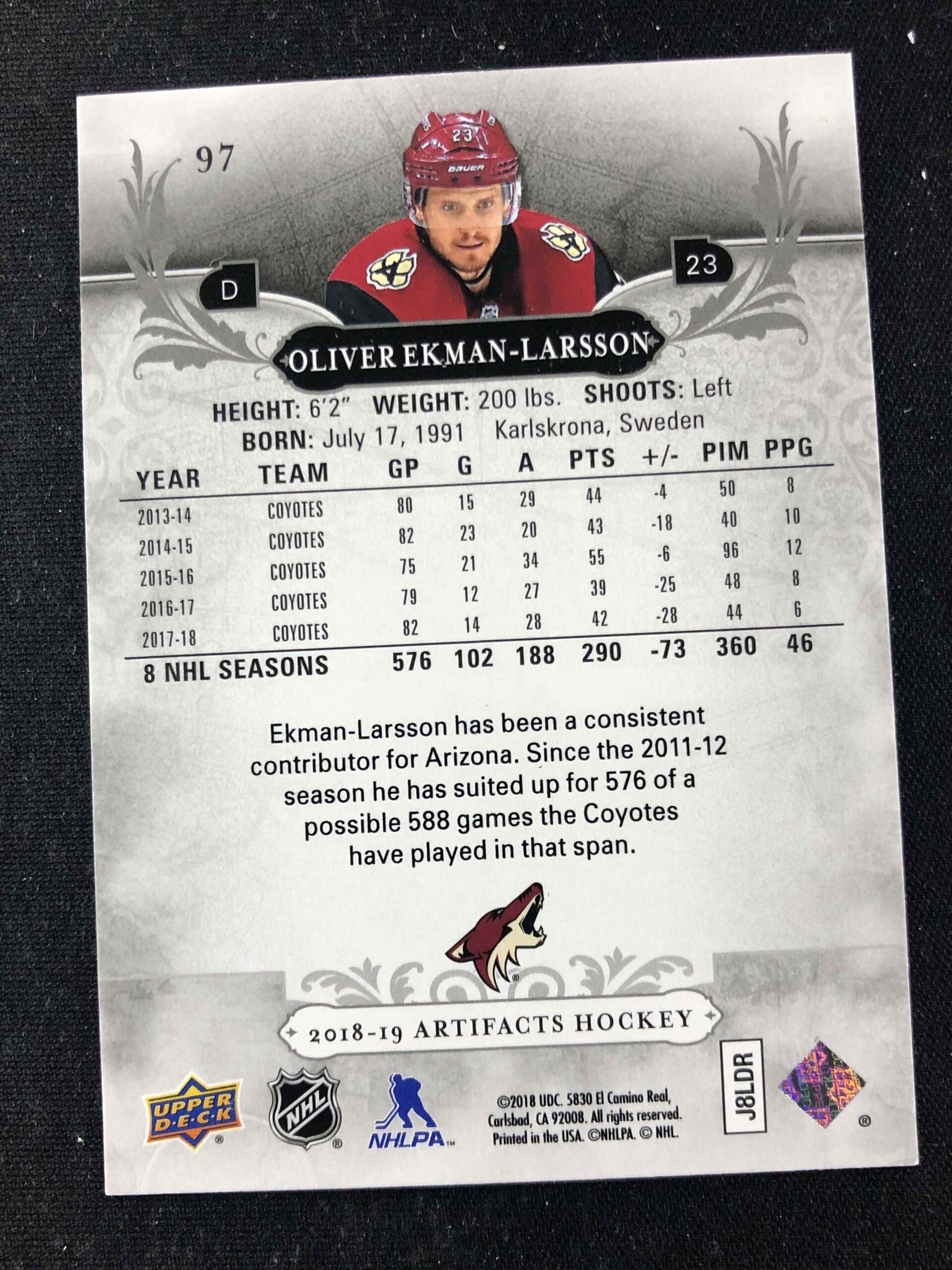 Sběratelská karta 2018/2019 Upper Deck Artifacts Base 97 Oliver Ekman-Larsson