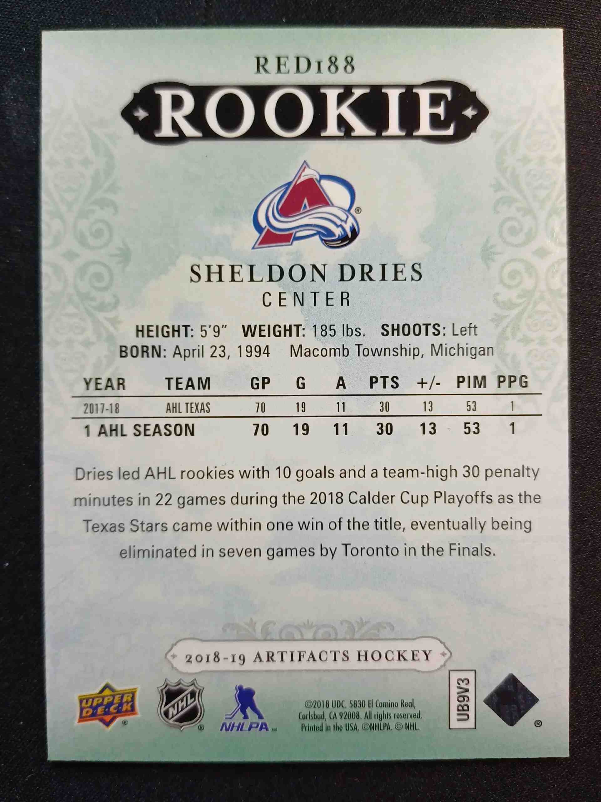 Sběratelská karta 2018/2019 Upper Deck Artifacts Base RED188 Sheldon Dries 460/799 /n/ Stav karty je NM-MT /n/ Pro bližší detail si prohlédněte přiložené fotografie