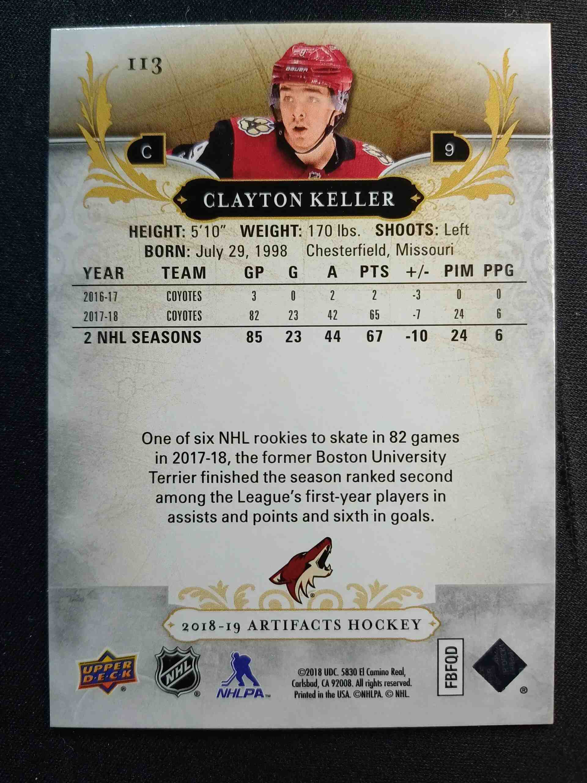 Sběratelská karta 2018/2019 Upper Deck Artifacts Emerald 113 Clayton Keller Paralel 40/99
