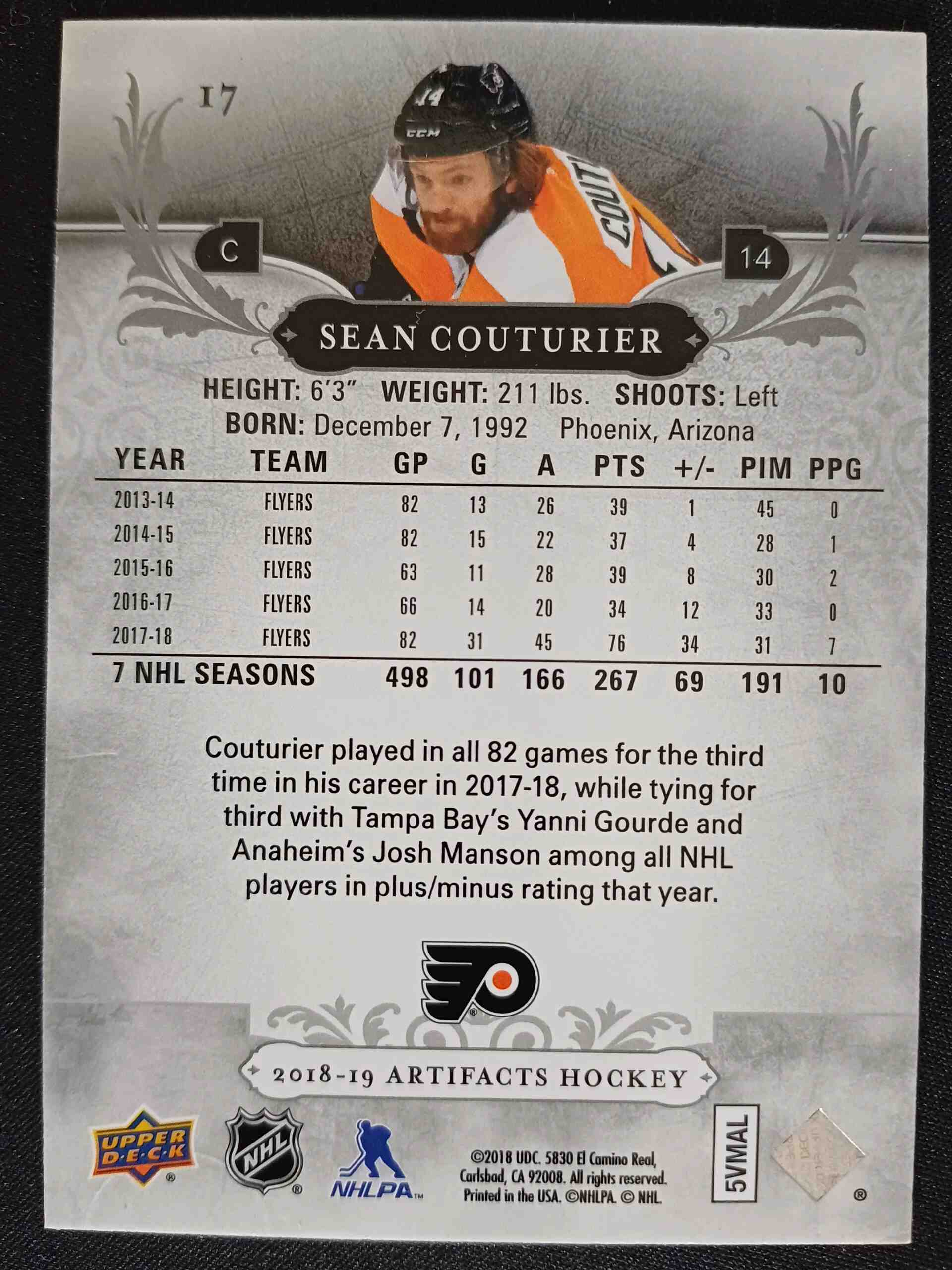 Sběratelská karta 2018/2019 Upper Deck Artifacts Emerald 17 Sean Couturier Paralel 62/99