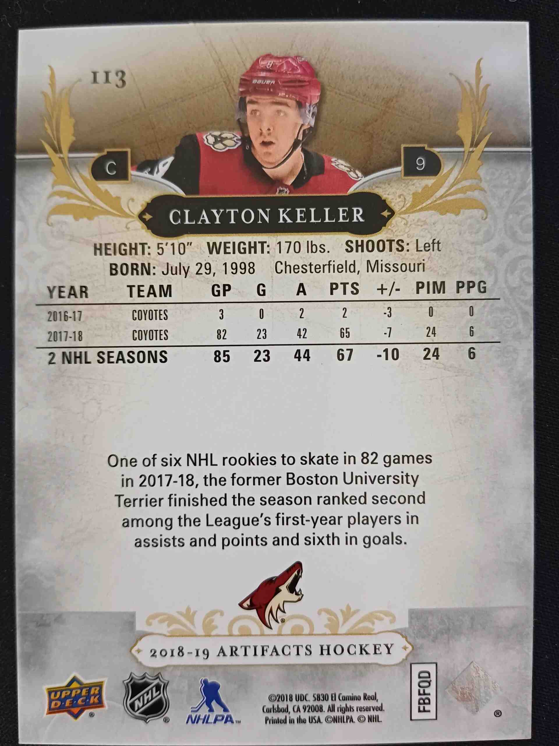 2018/2019 Upper Deck Artifacts Purple 113 Clayton Keller Paralel 15/20
