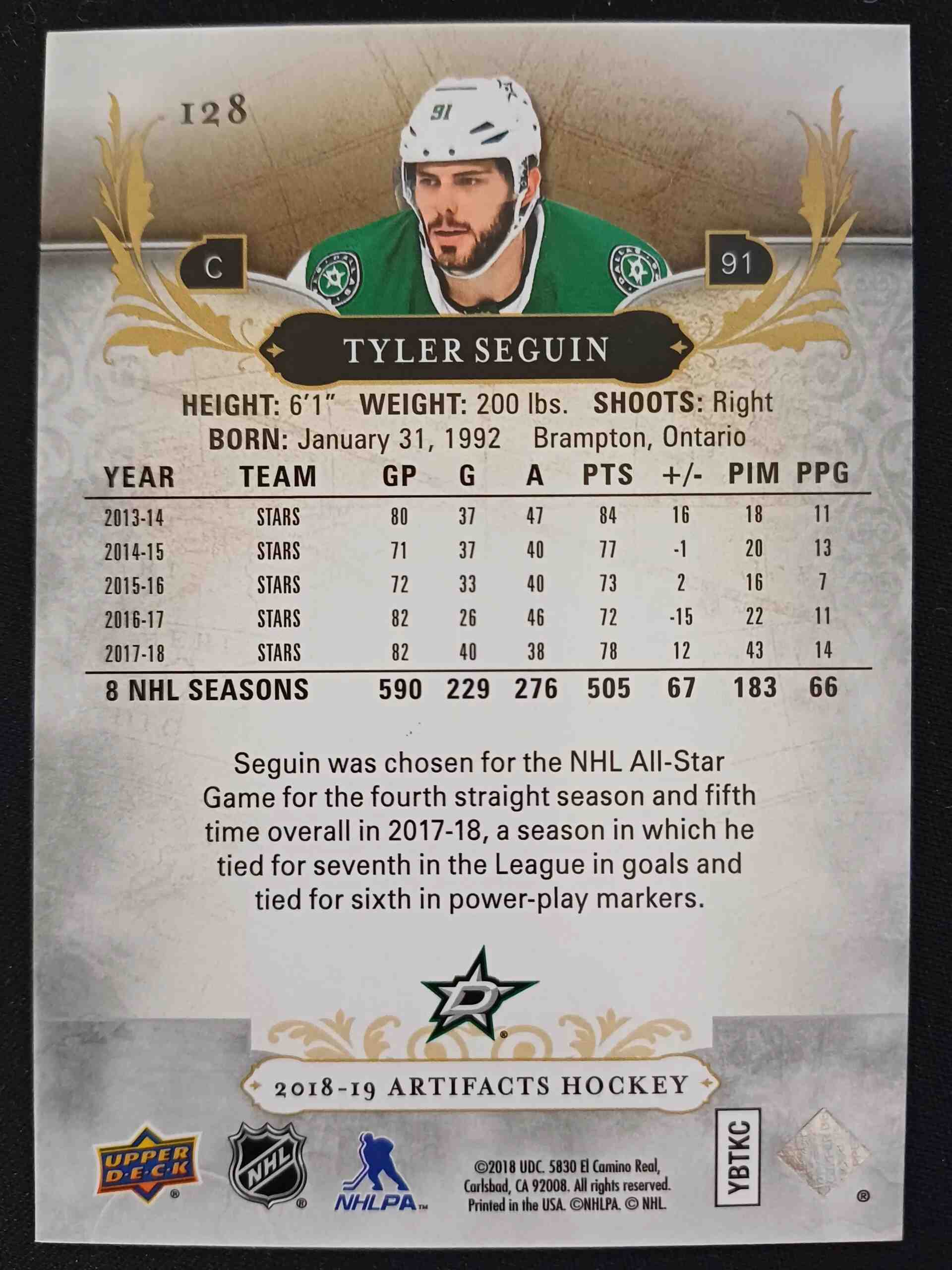 Sběratelská karta 2018/2019 Upper Deck Artifacts Purple 128 Tyler Seguin Paralel 15/20