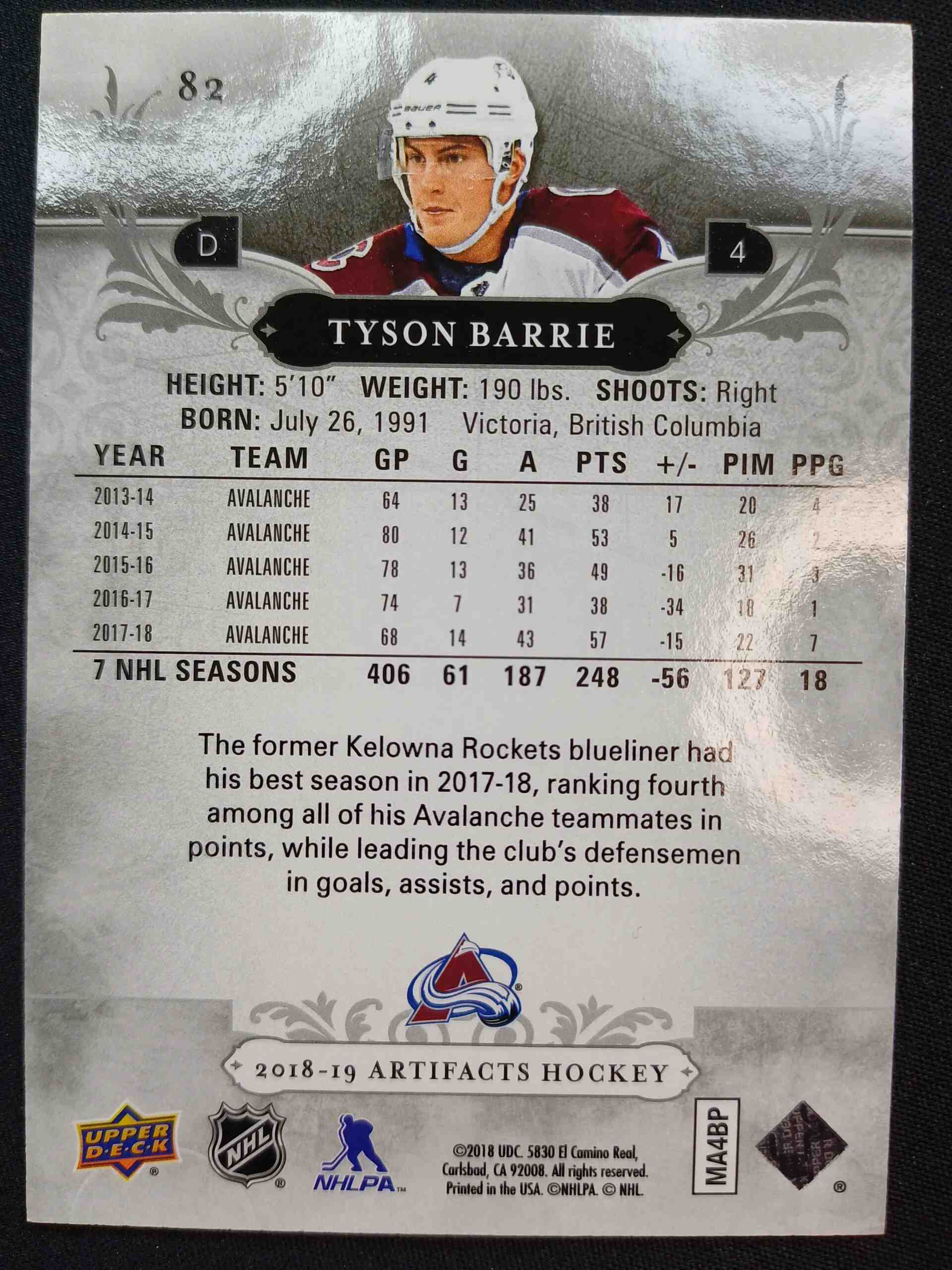 Sběratelská karta 2018/2019 Upper Deck Artifacts Ruby 82 Tyson Barrie Paralel 136/299