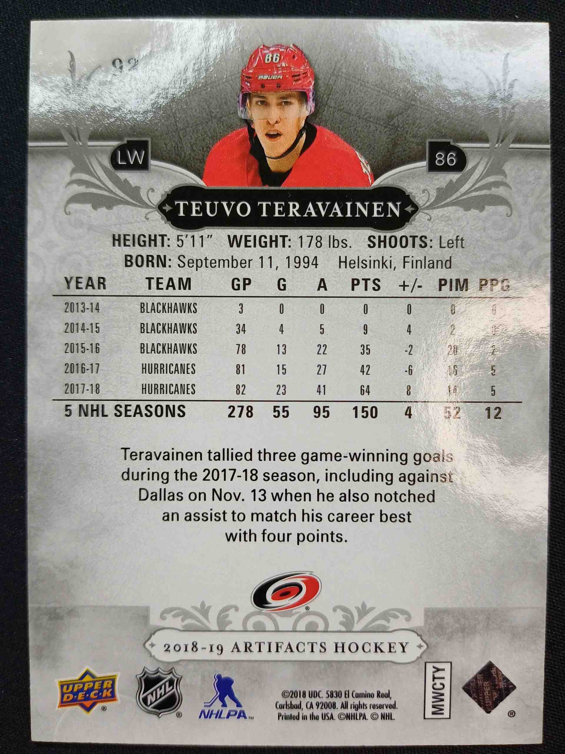 2018/2019 Upper Deck Artifacts Ruby 92 Teuvo Teravainen Paralel 168/299