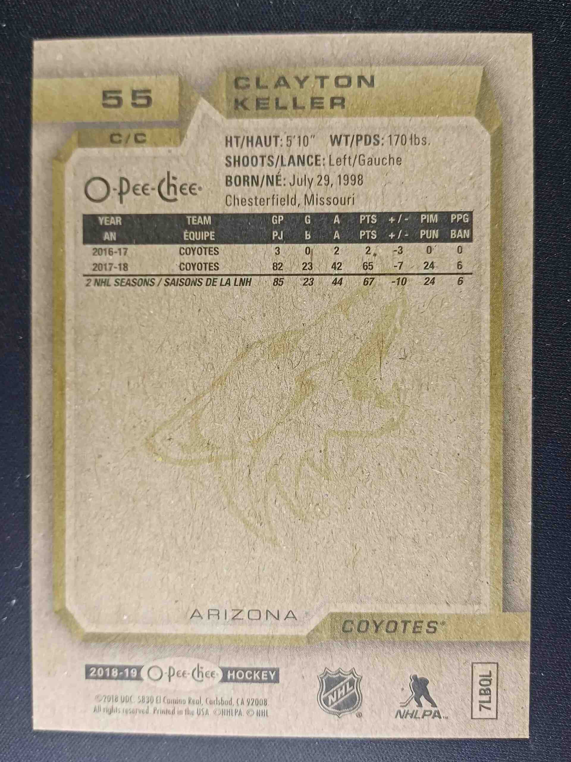 Sběratelská karta 2018/2019 Upper Deck O-Pee-Chee Gold 55 Clayton Keller Paralel