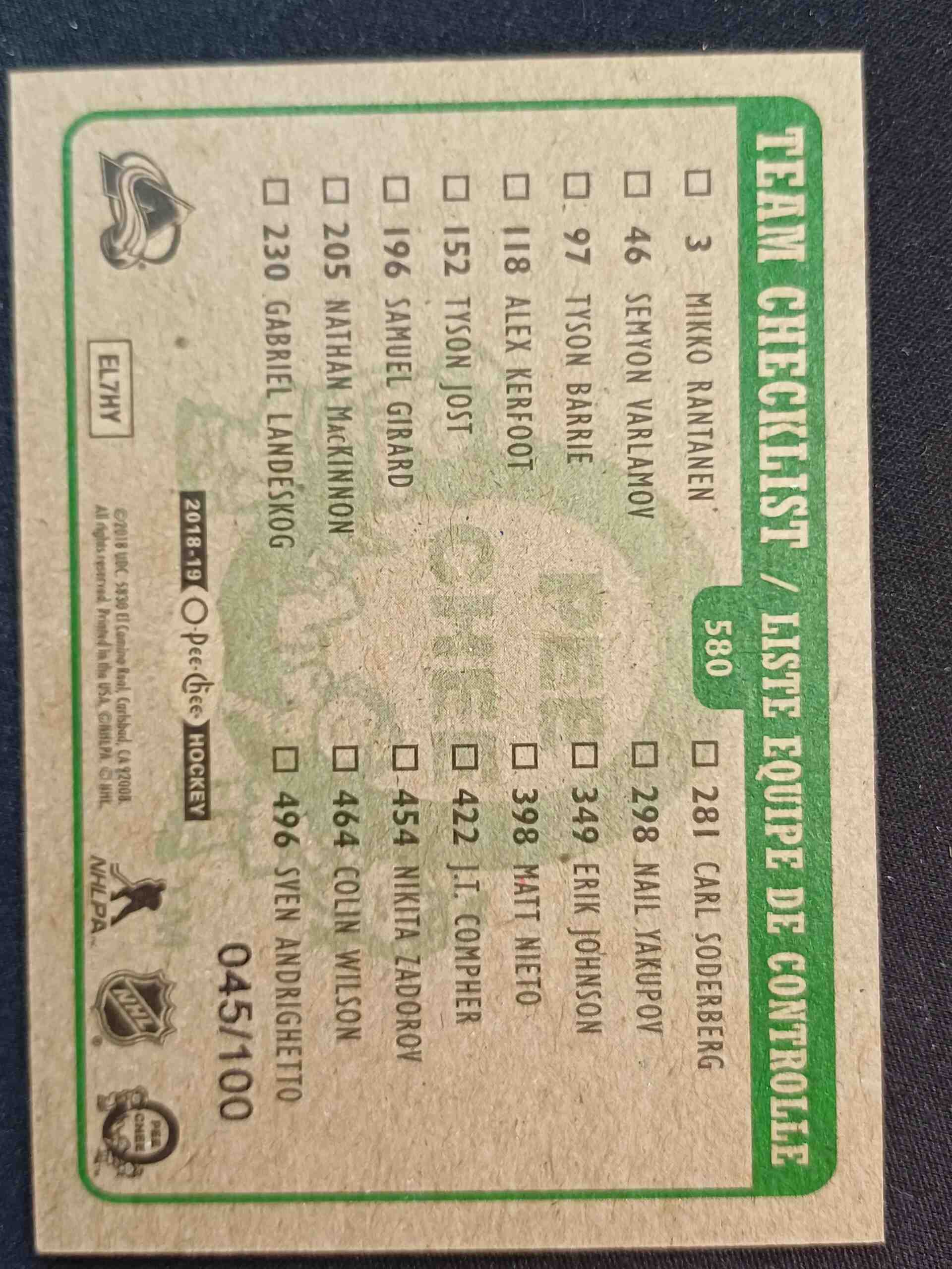 Sběratelská karta 2018/2019 Upper Deck O-Pee-Chee Team Logo Retro Black Border 580 Paralel 045/100