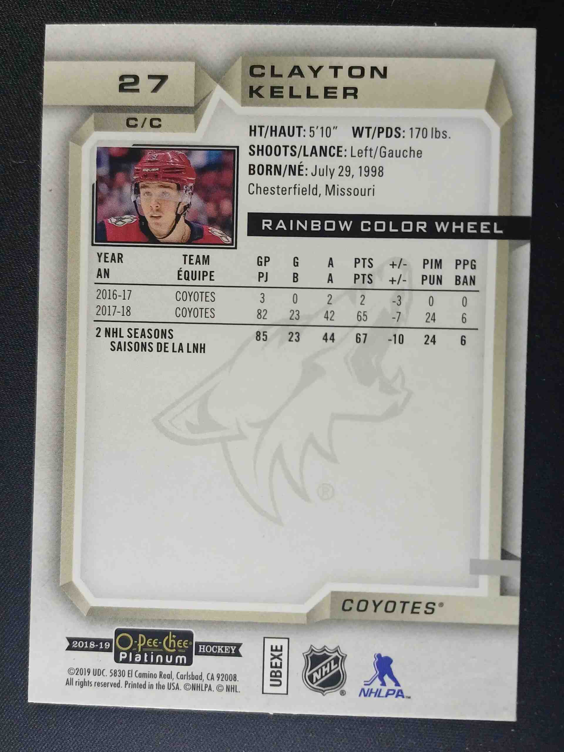 Sběratelská karta 2018/2019 Upper Deck OPC Platinum Rainbow Color Wheel 27 Clayton Keller Paralel