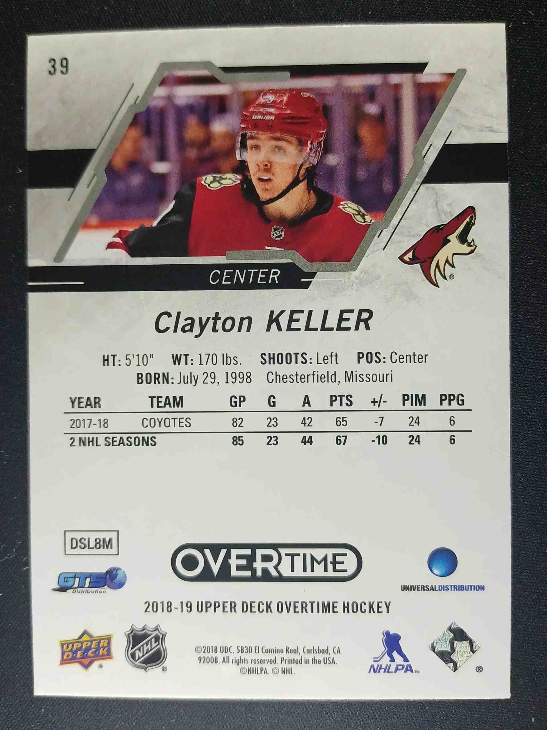 Sběratelská karta 2018/2019 Upper Deck Overtime Base 39 Clayton Keller