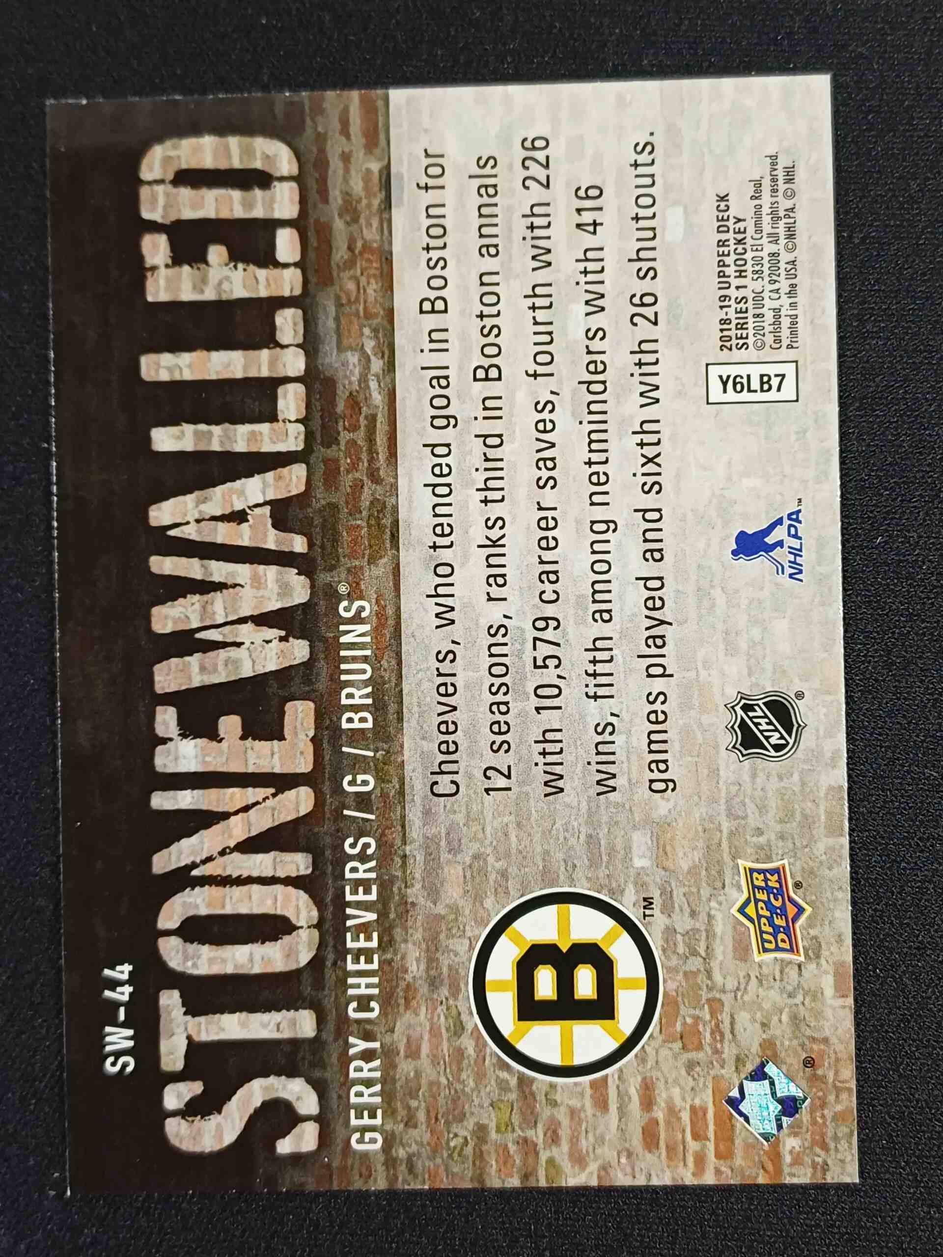 Sběratelská karta 2018/2019 Upper Deck Series 1 Stonewalled SW-44 Gerry Cheevers Inzert