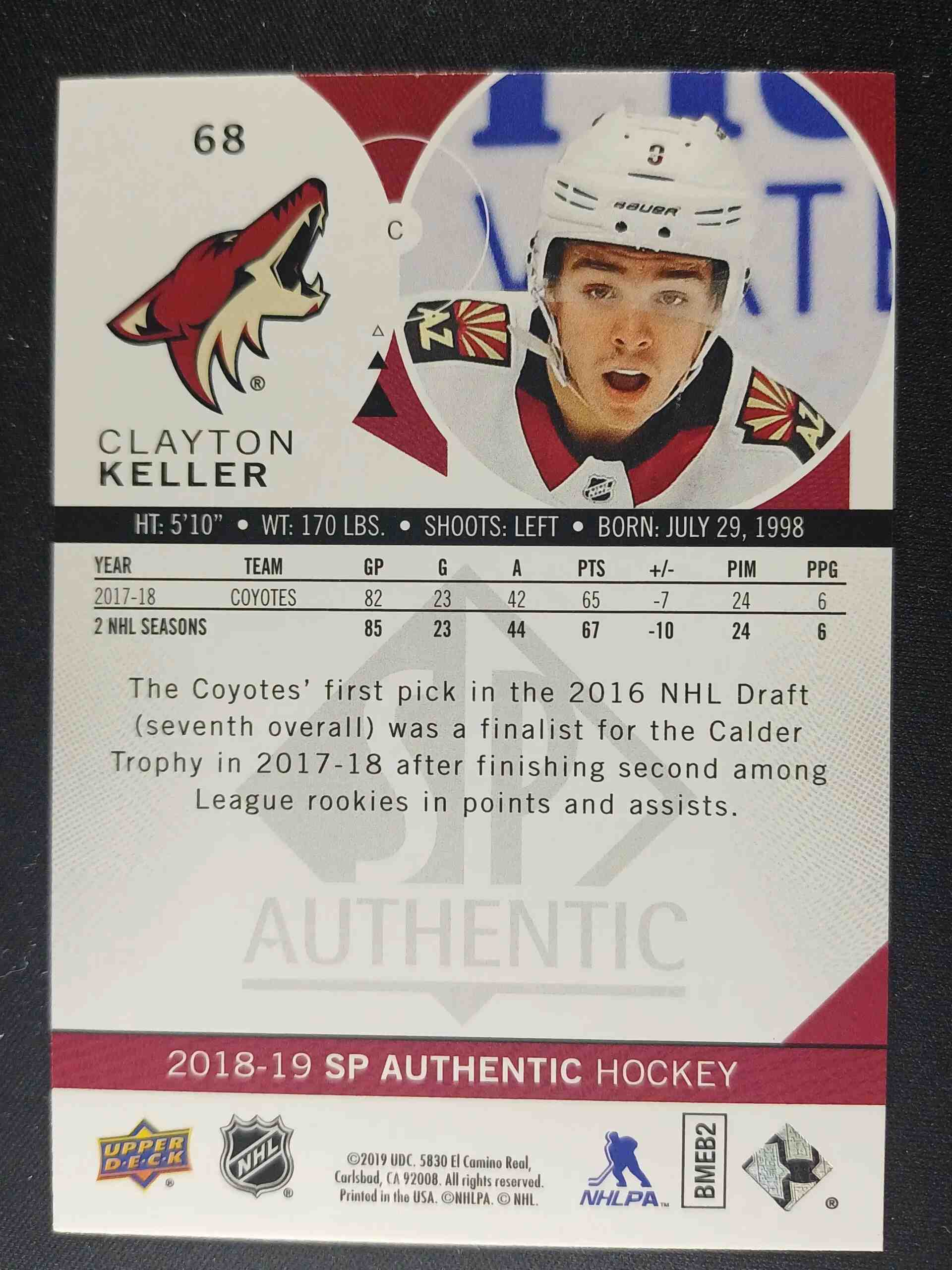Sběratelská karta 2018/2019 Upper Deck SP Authentic Red 68 Clayton Keller Paralel