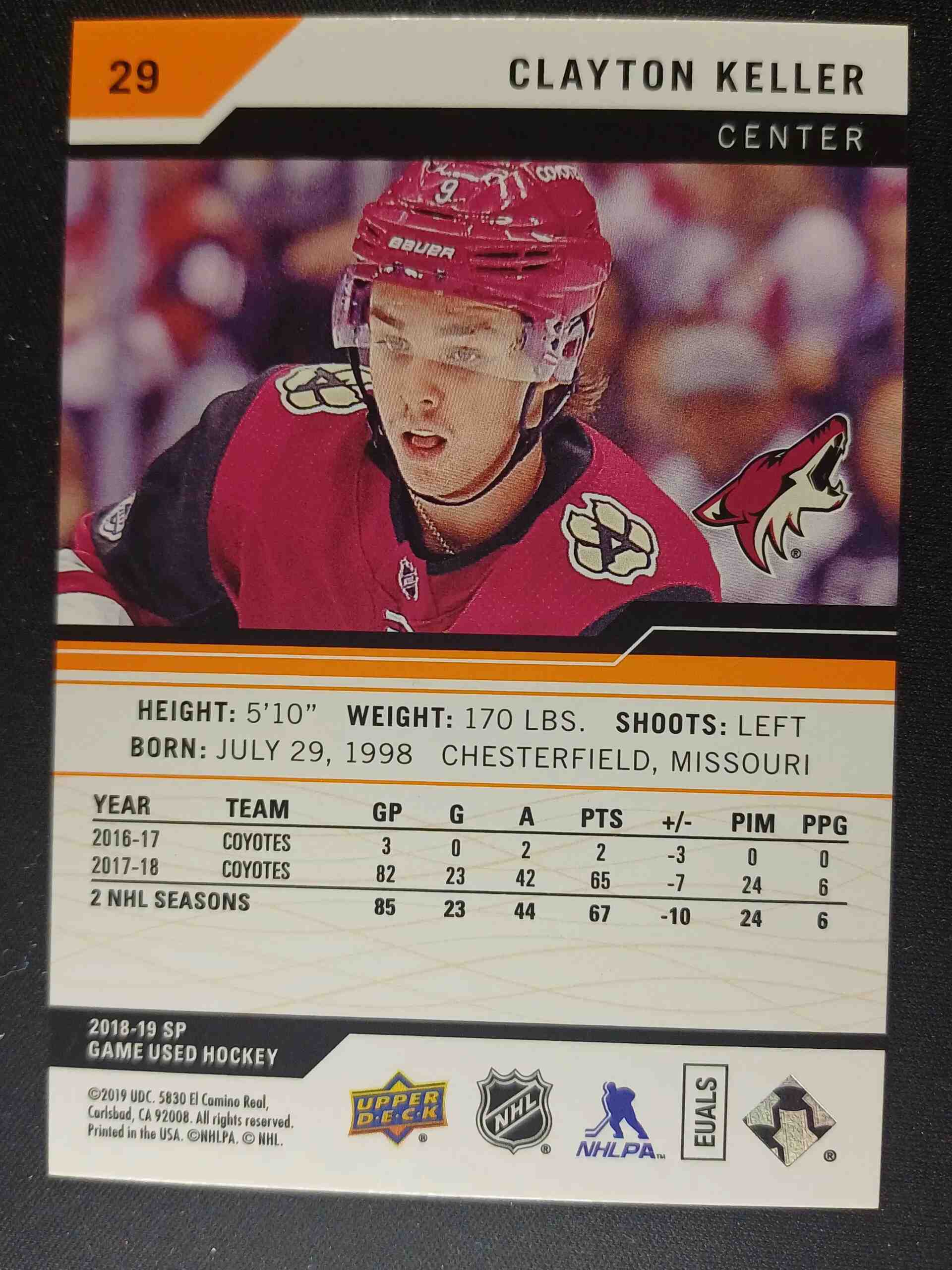 Sběratelská karta 2018/2019 Upper Deck SPGU Orange Rainbow 29 Clayton Keller Paralel 009/165
