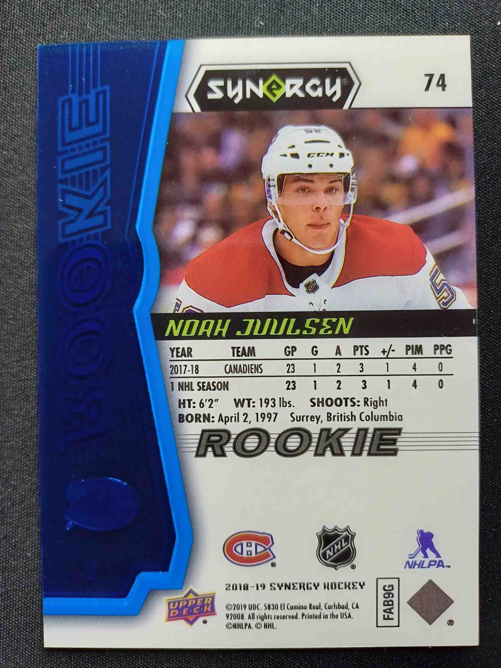 Sběratelská karta 2018/2019 Upper Deck Synergy Blue 74 Noah Juulsen Paralel