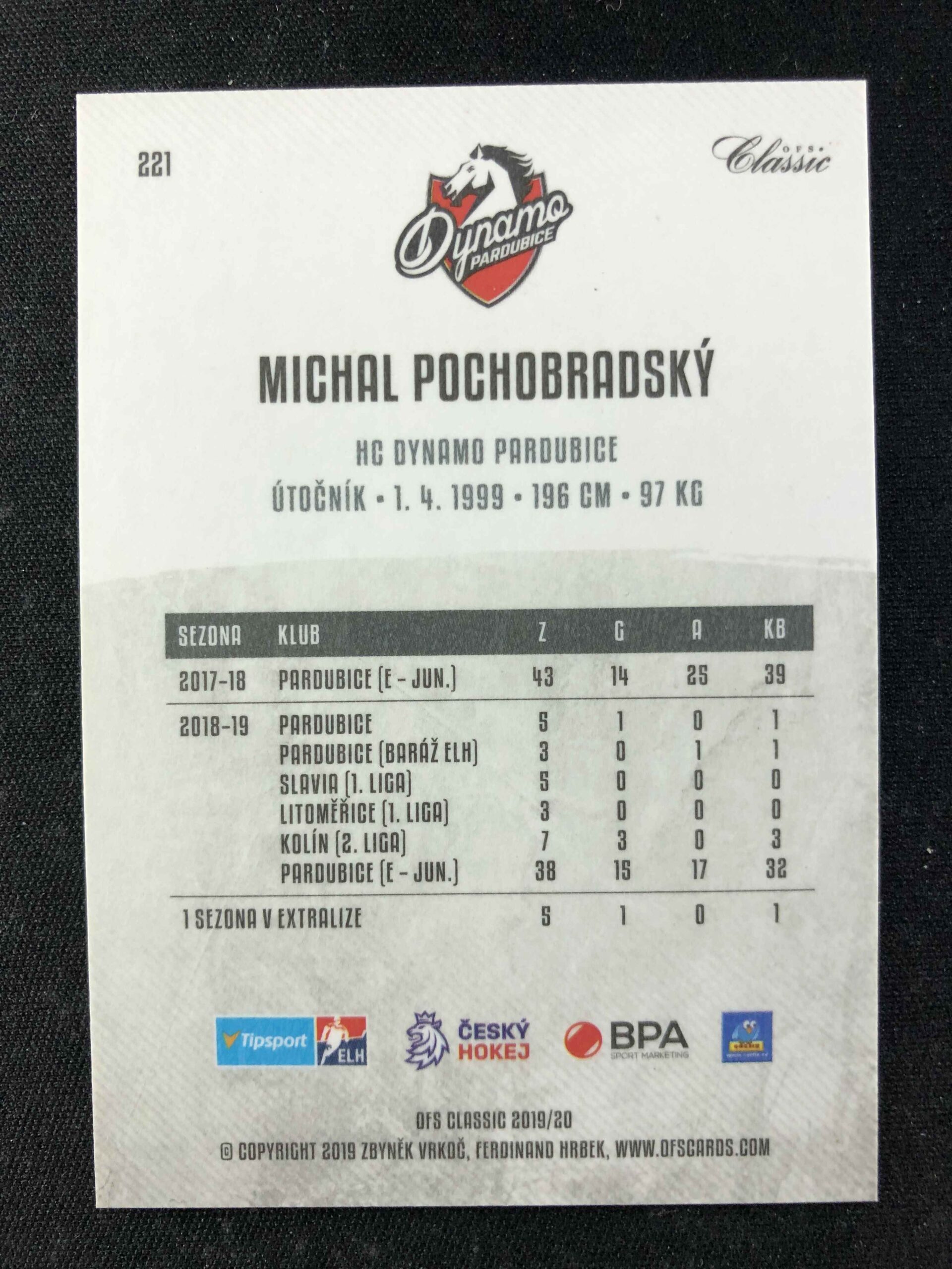 Sběratelská karta 2019/2020 OFS Classic Base 221 Michal Pochobradský