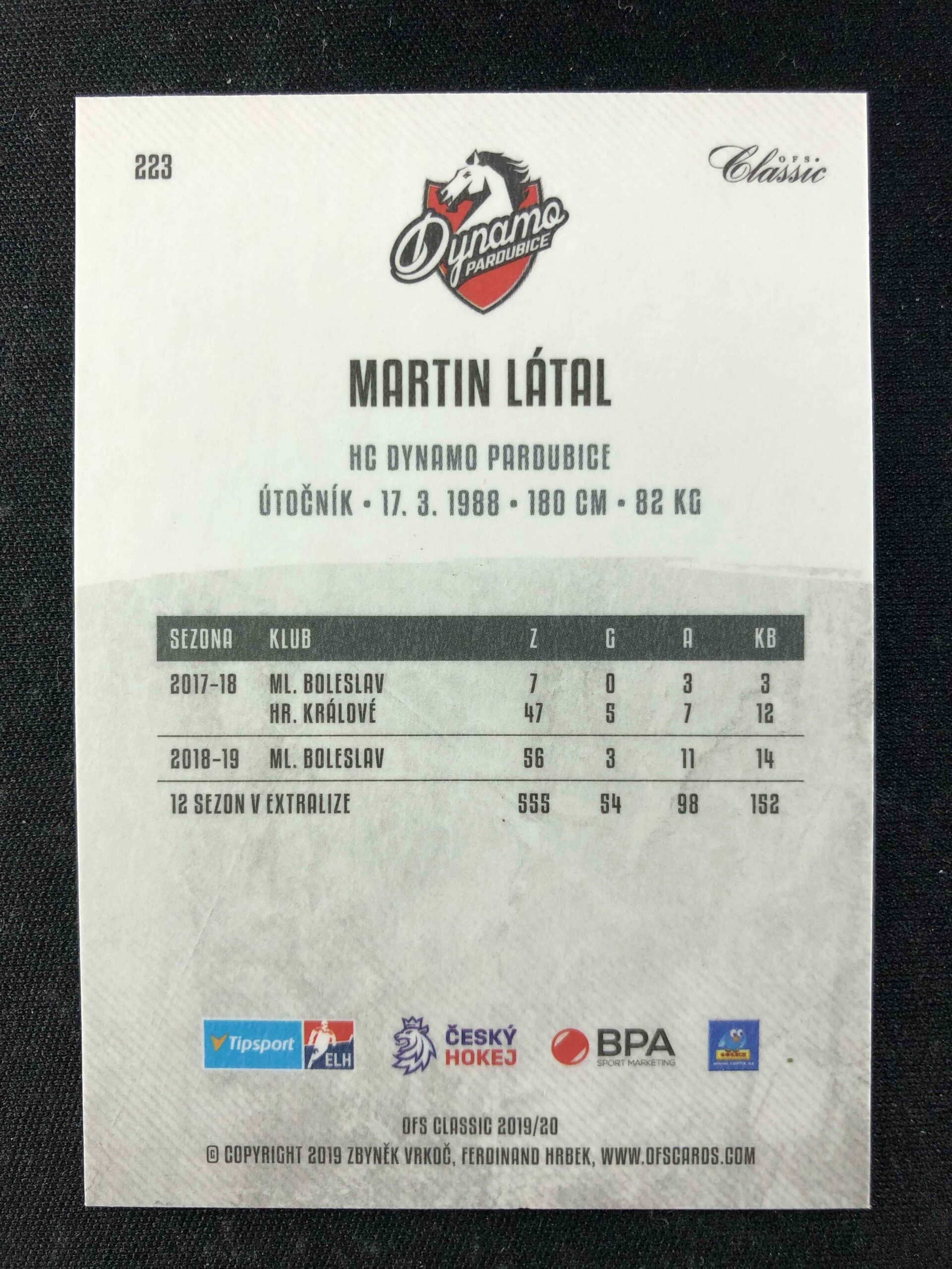 Sběratelská karta 2019/2020 OFS Classic Base 223 Martin Látal