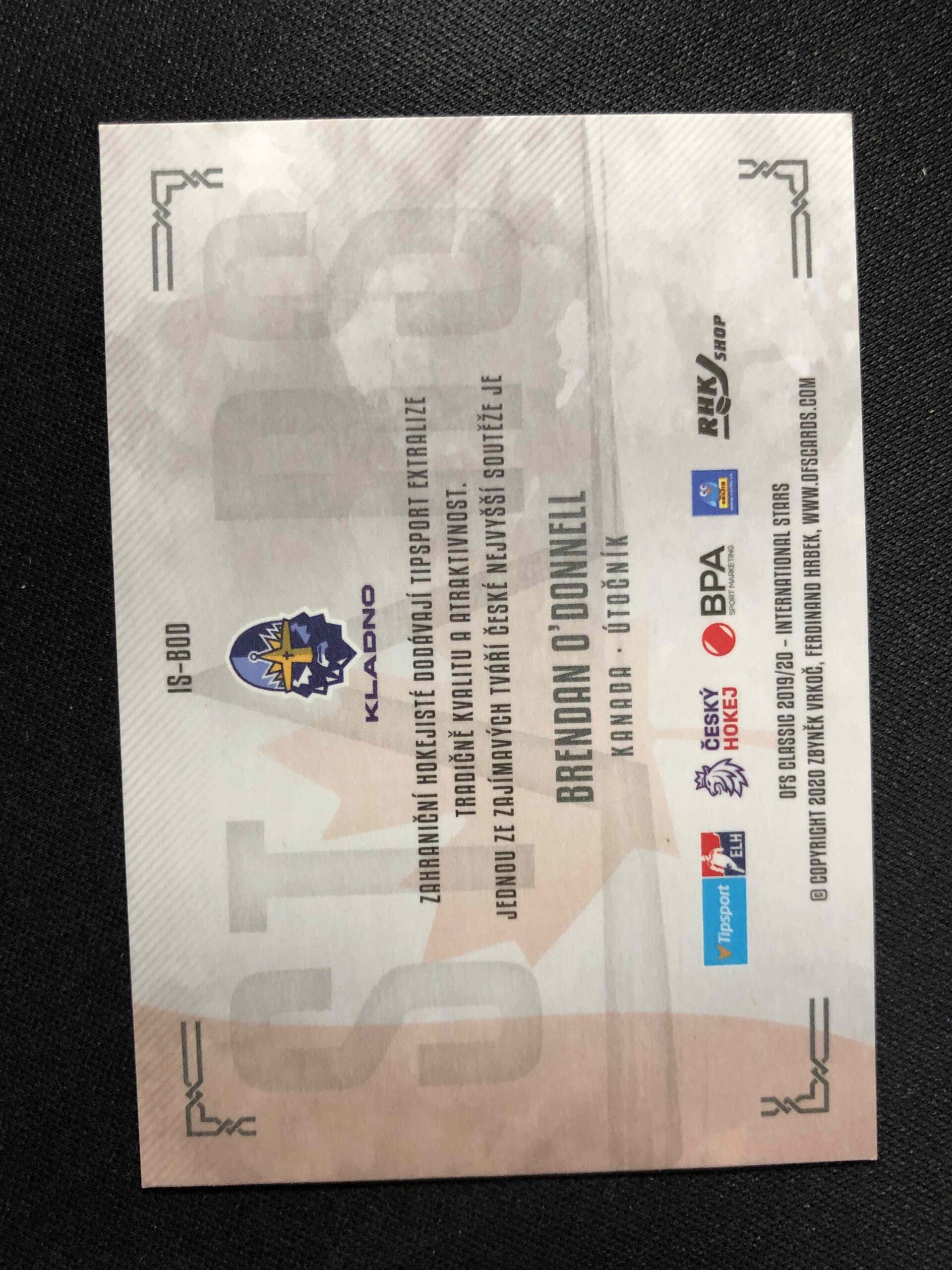 Sběratelská karta 2019/2020 OFS Classic Internation Stars AUTO razítko EXPO IS-BOD Brendan O’Donnell AUTO 2/6